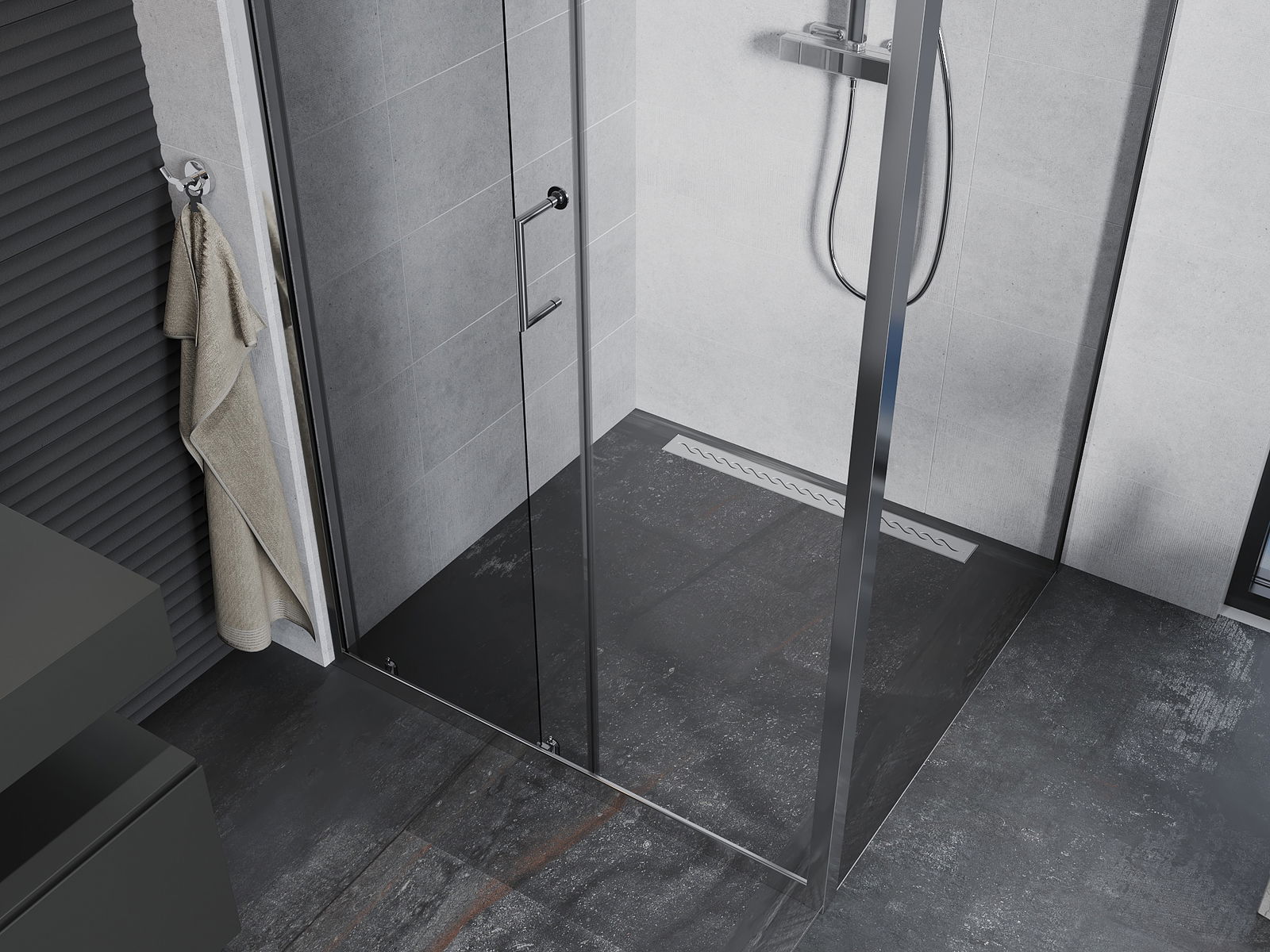 Posuvné dveře se pohybují po speciálních vodítkách a nevyžadují další prostor pro jejich otevření, proto se hodí do menších koupelen. Díky dvojitým válečkům z odolného plastu je jejich pohyb plynulý.