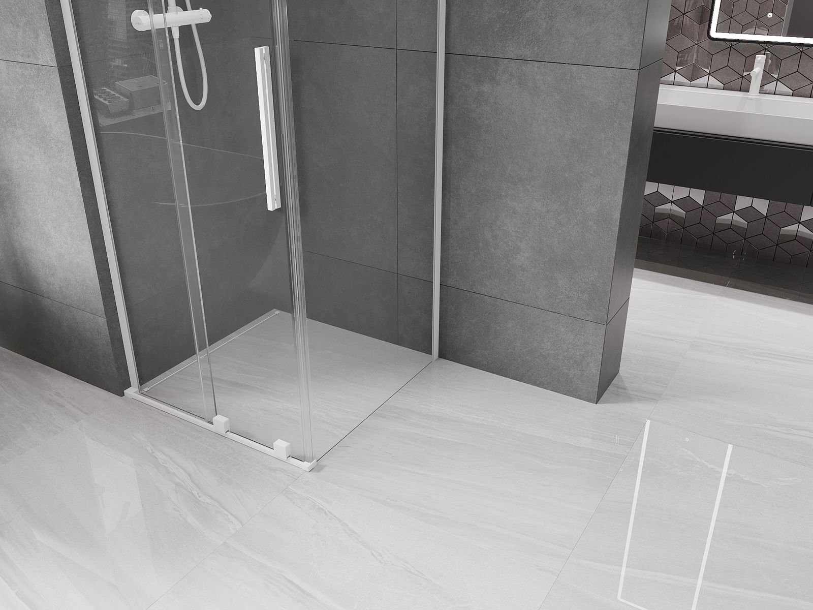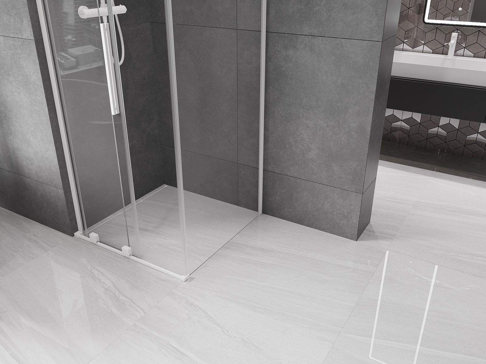 Produkt lze podle potřeby namontovat jak na sprchovou vaničku, tak přímo na podlahu. Univerzální způsob montáže umožňuje přizpůsobení produktu různým typům koupelen a konfiguracím prostor.