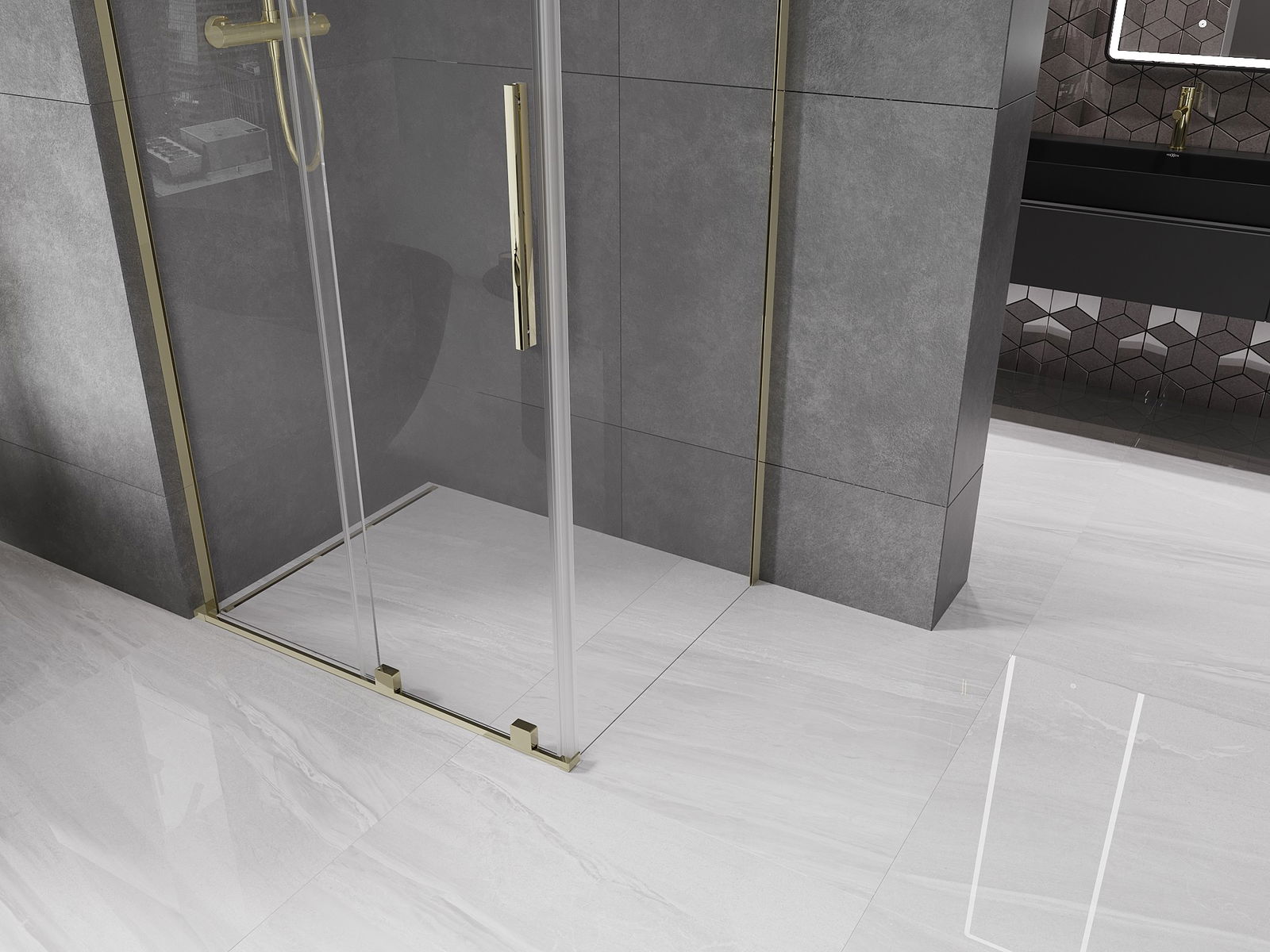 Mexen Velar L posuvná sprchová kabina 90 x 85 cm, transparentní, zlatá - 871-090-085-03-50