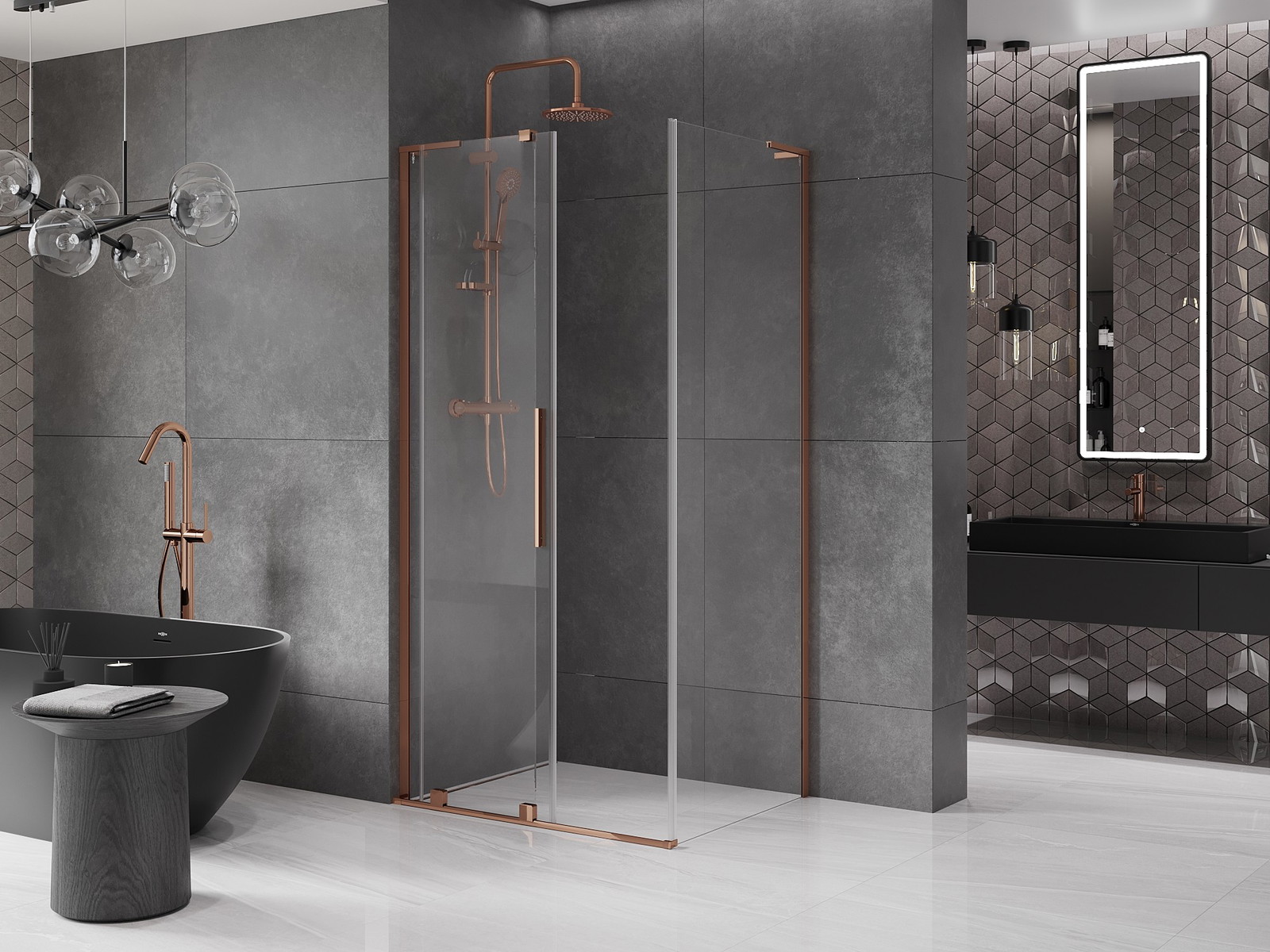 Mexen Velar L posuvný sprchový kout 120 x 90 cm, transparentní, růžové zlato - 871-120-090-03-60