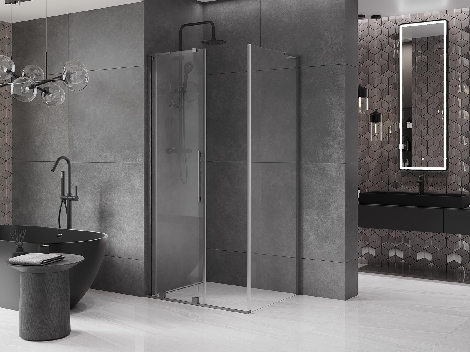 Mexen Velar L posuvná sprchová kabina 100 x 120 cm, transparentní, kartáčovaná zbraňová šedá - 871-100-120-03-66
