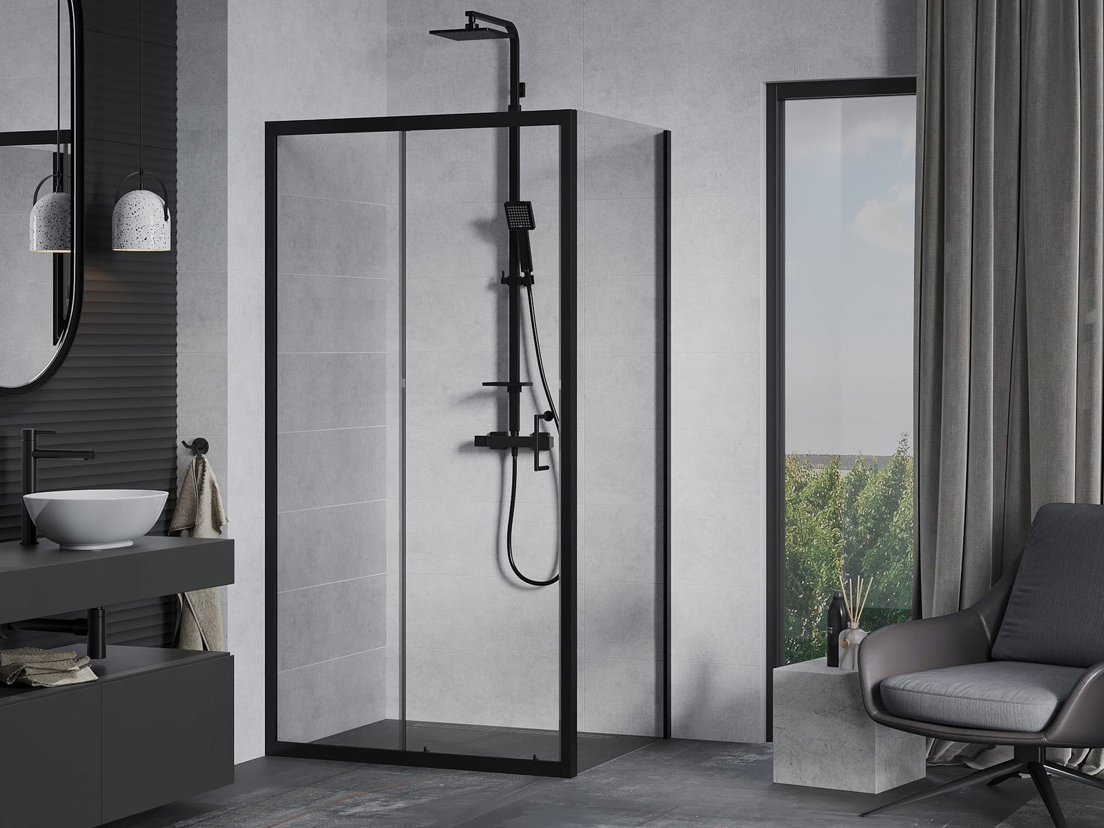Praktická a pohodlná rukojeť je vyrobena z odolného a trvanlivého kovu. Moderní tvar ve spojení s povrchovou úpravou, která ladí s barvou profilů, dodává celku moderní a stylový vzhled, zdůrazňující estetiku každé koupelny.