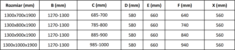 Velikost: 130x90 cm (dveře 130 cm, stěna 90 cm)