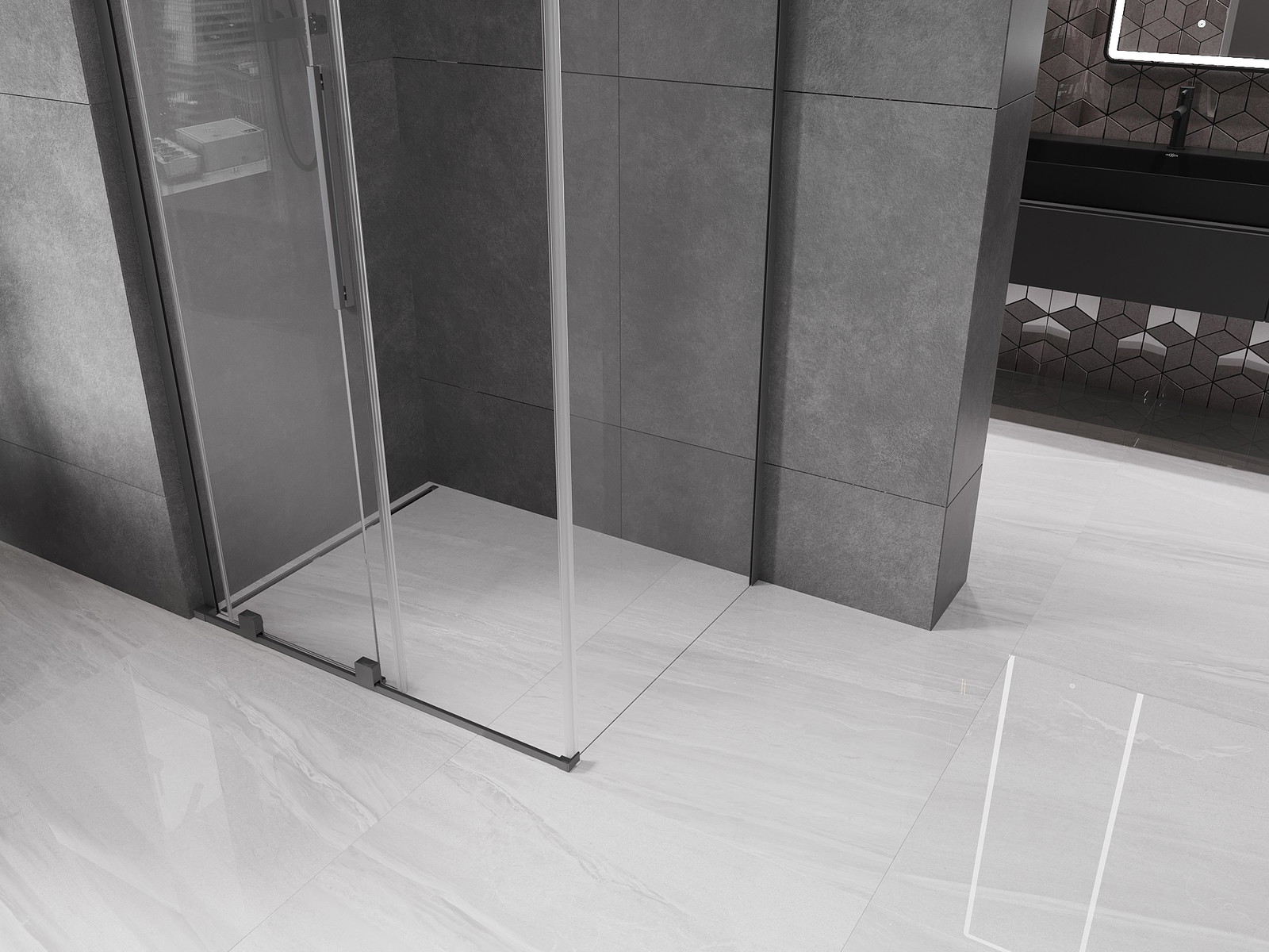 Mexen Velar L posuvná sprchová kabina 100 x 110 cm, průhledná, gun metal - 871-100-110-03-95