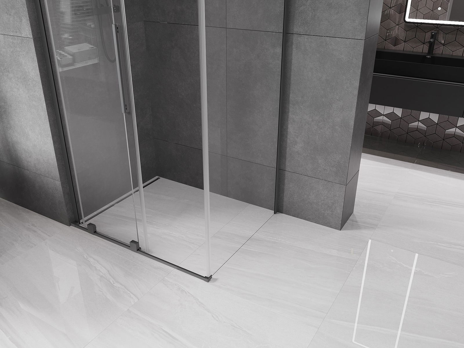 Mexen Velar L posuvná sprchová kabina 110 x 90 cm, průhledná, gun metal - 871-110-090-03-95