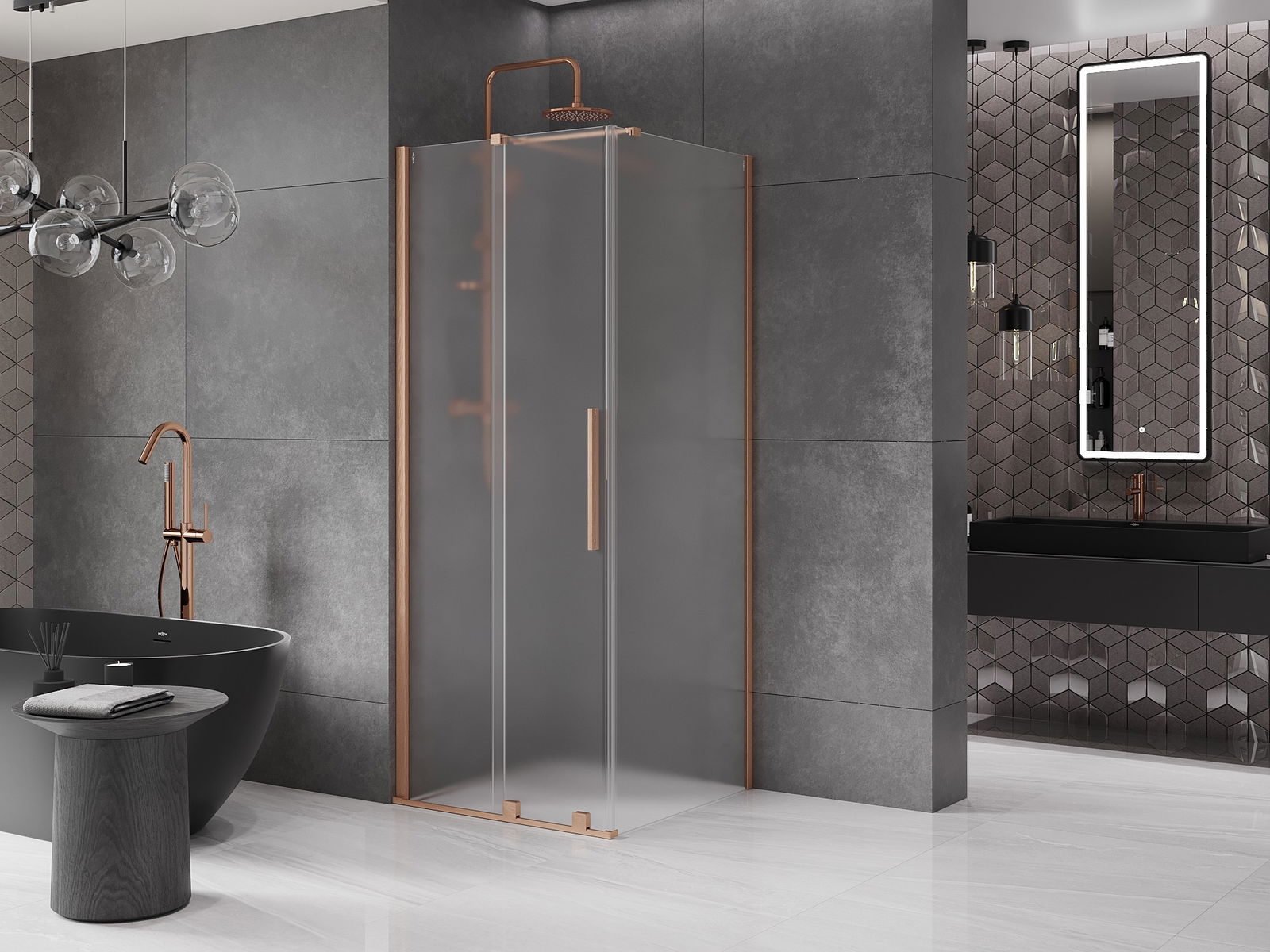 Mexen Velar posuvná sprchová kabina 90 x 90 cm, mat, kartáčovaná měď - 871-090-090-31-65