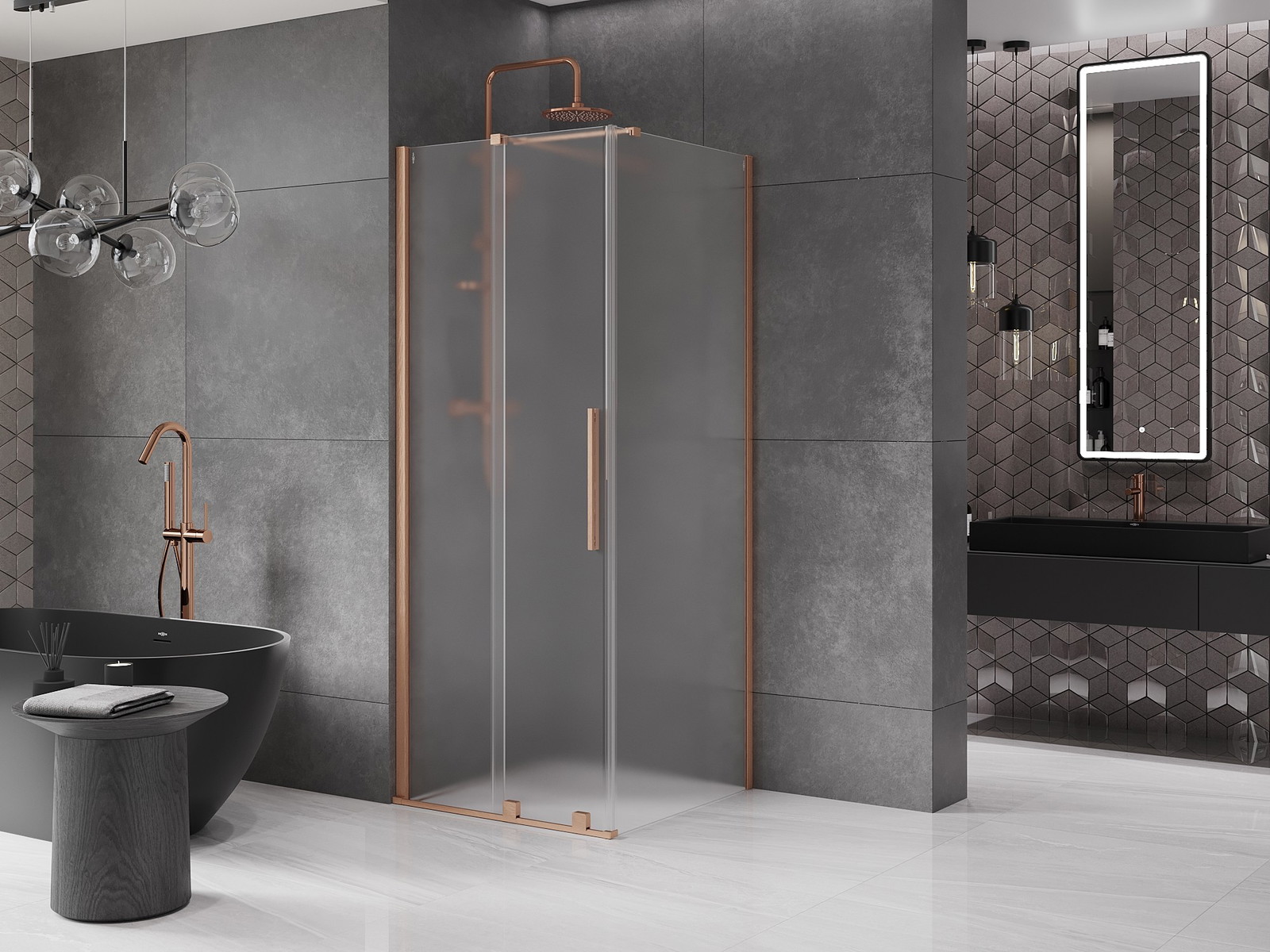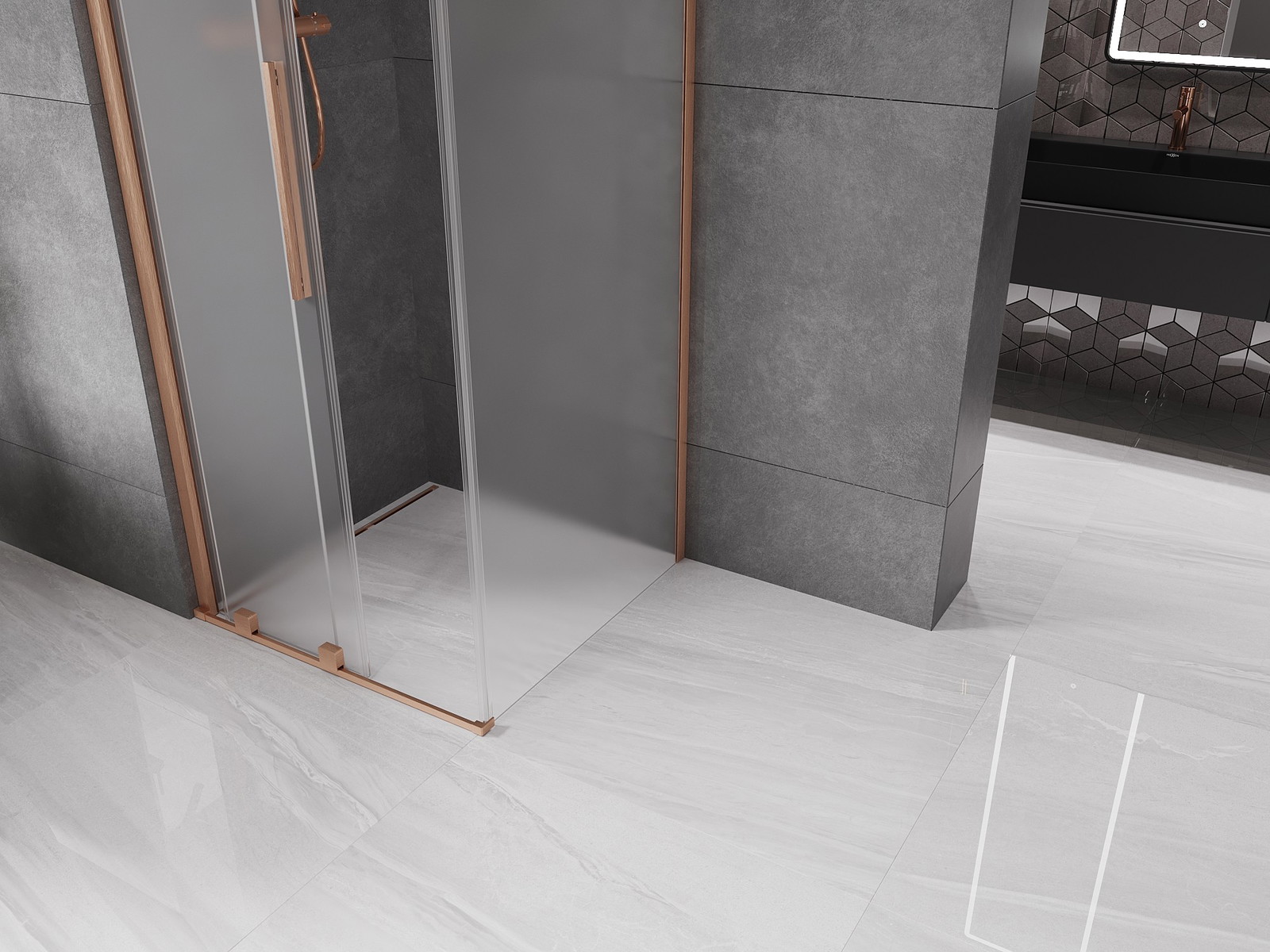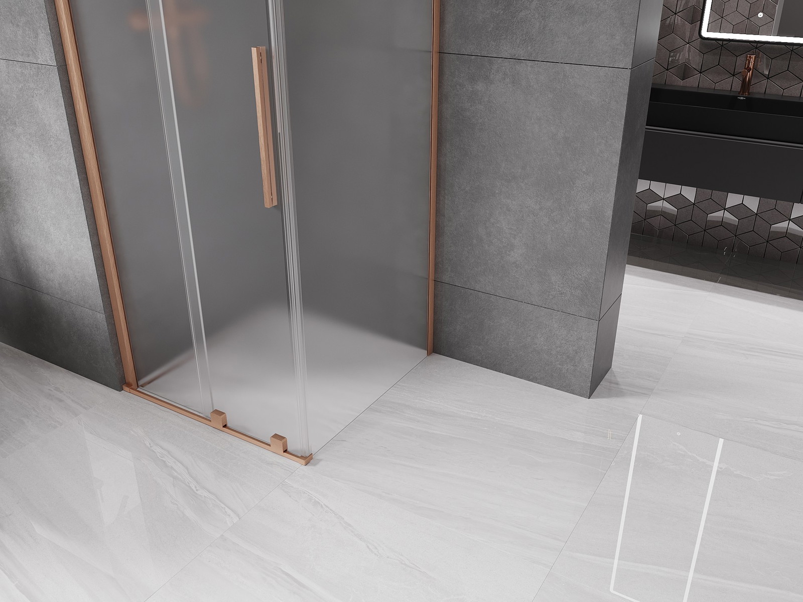 Mexen Velar posuvná sprchová kabina 90 x 90 cm, matná, kartáčovaná měď - 871-090-090-31-65