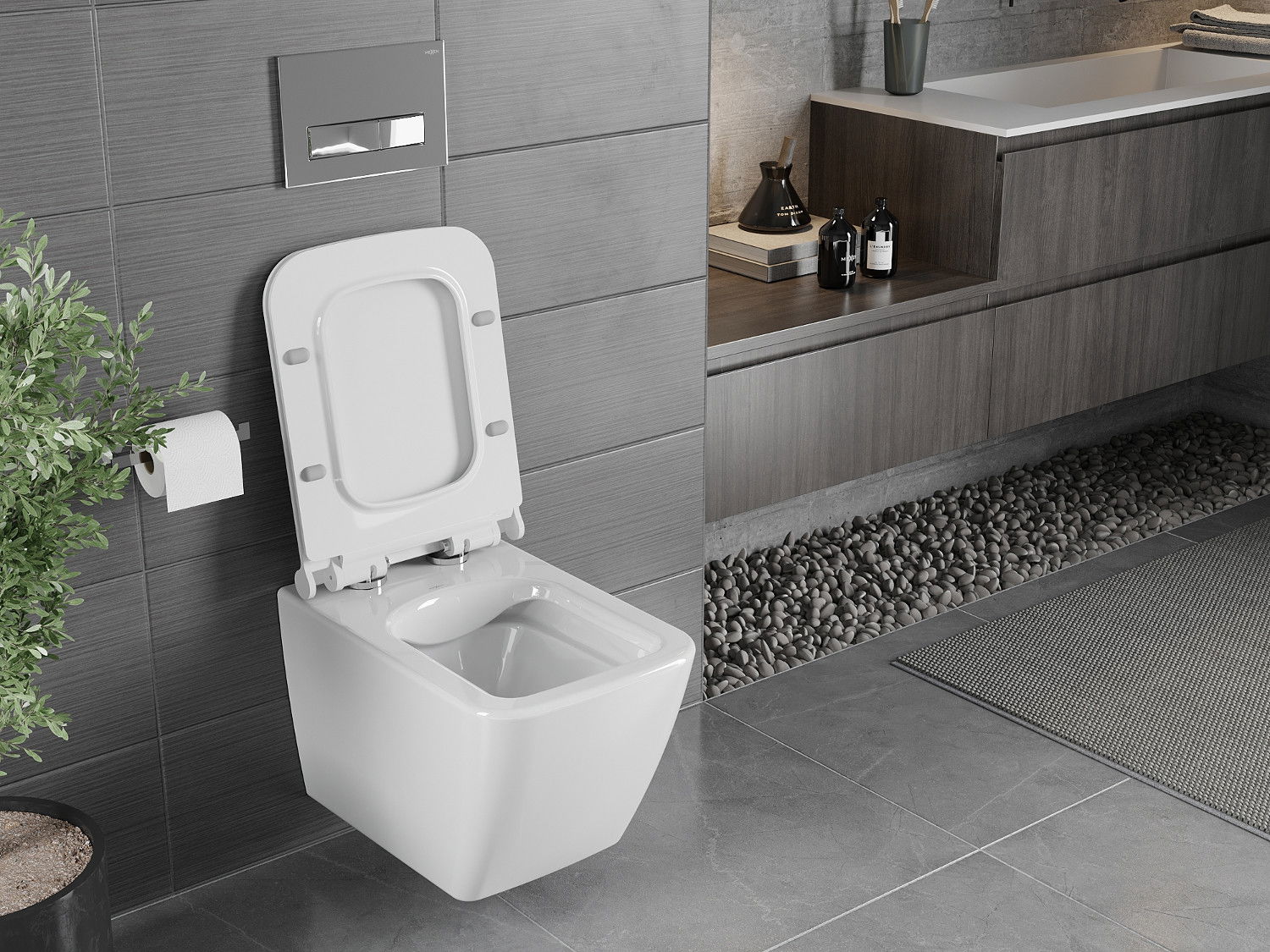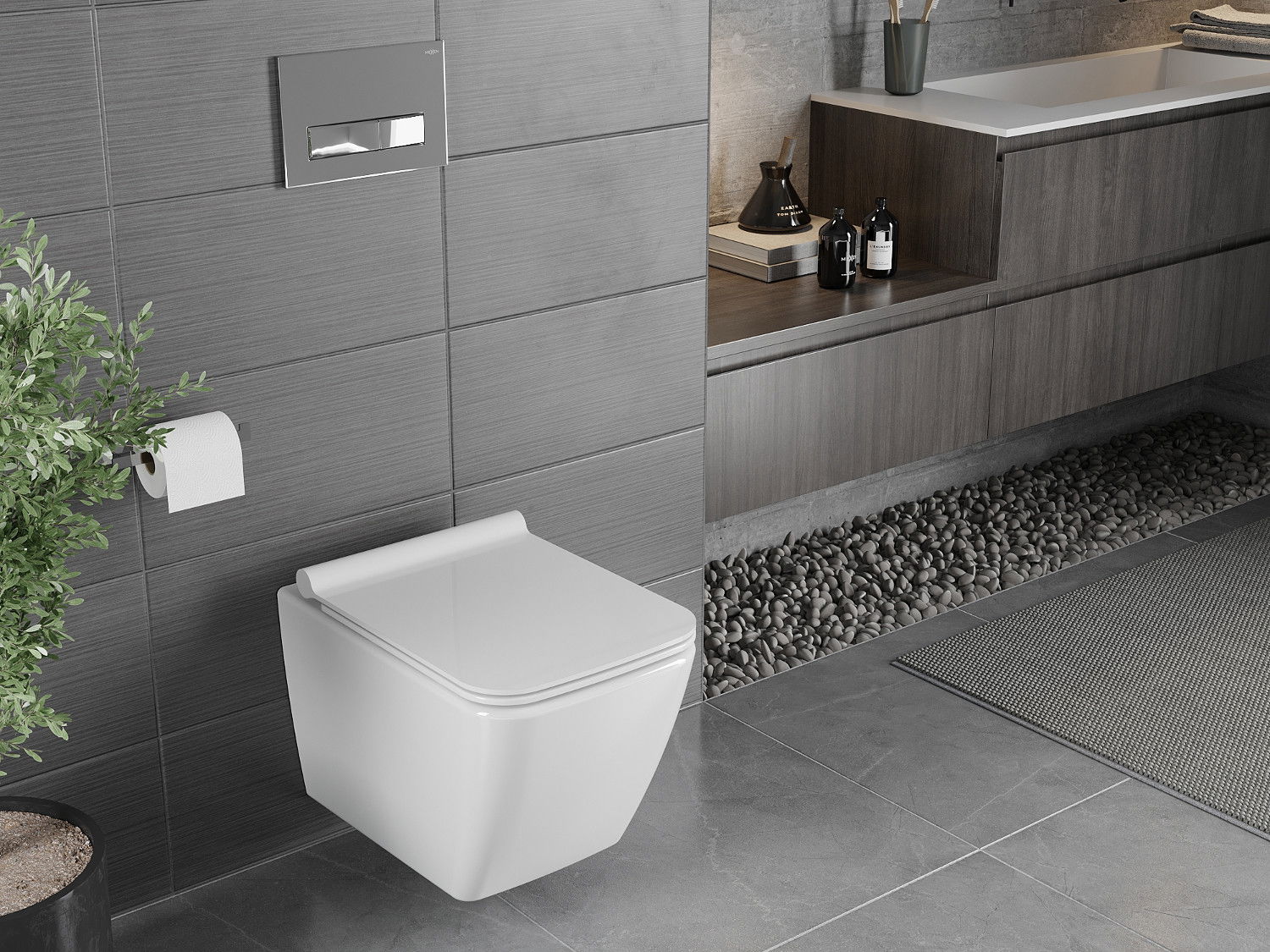 Využití podomítkového rámu k montáži keramiky umožňuje její zavěšení. Tímto způsobem můžeme dosáhnout nejen moderního vzhledu koupelny, ale také zvětšení prostoru a snadnějšího udržování čistoty.