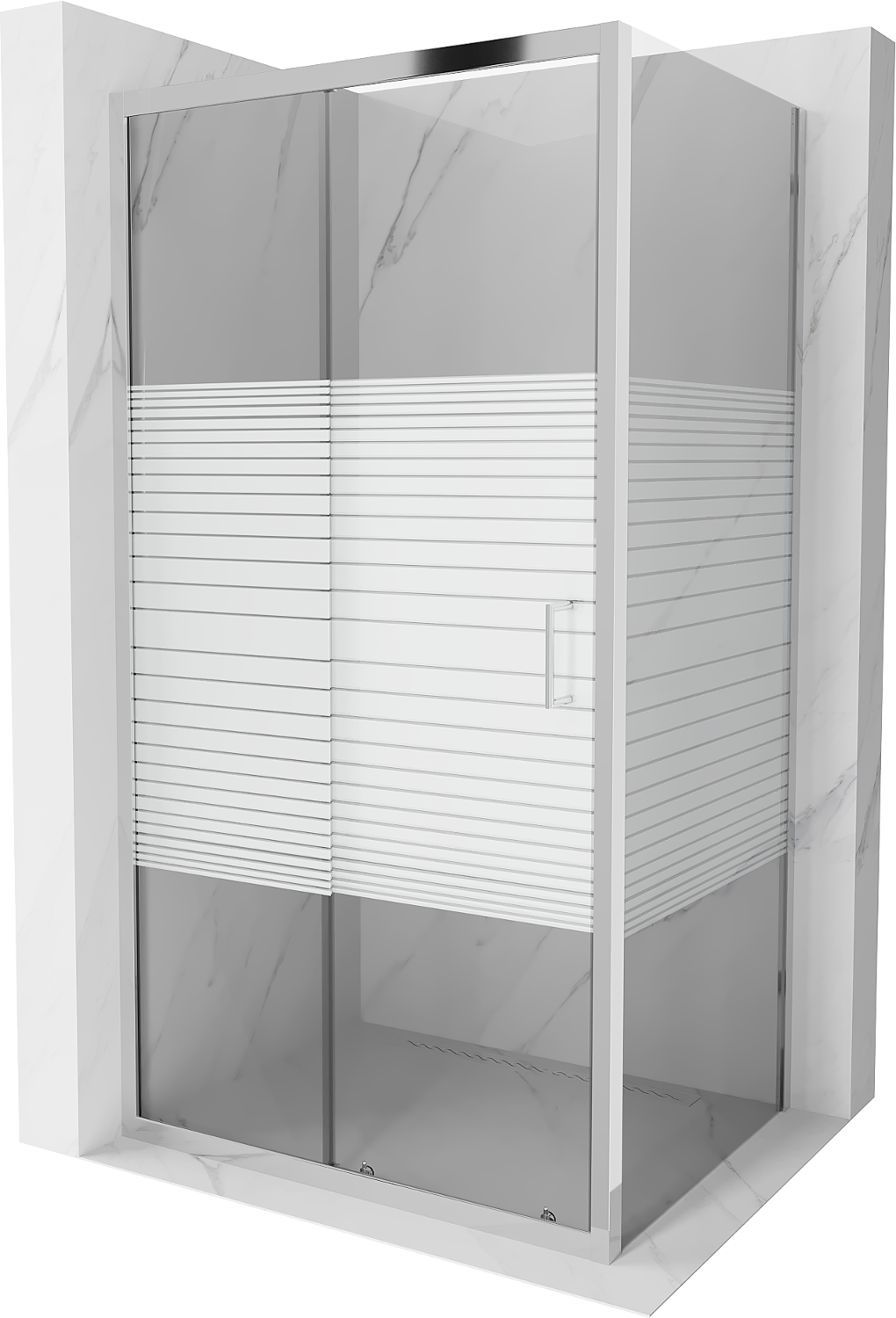 Mexen Apia posuvná sprchová zástěna 100 x 70 cm, bílé pruhy, chrom - 840-100-070-01-20