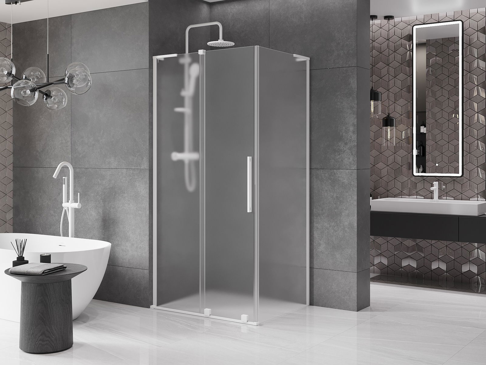 Mexen Velar L posuvná sprchová kabina 120 x 100 cm, mléčné sklo, bílá - 871-120-100-33-20