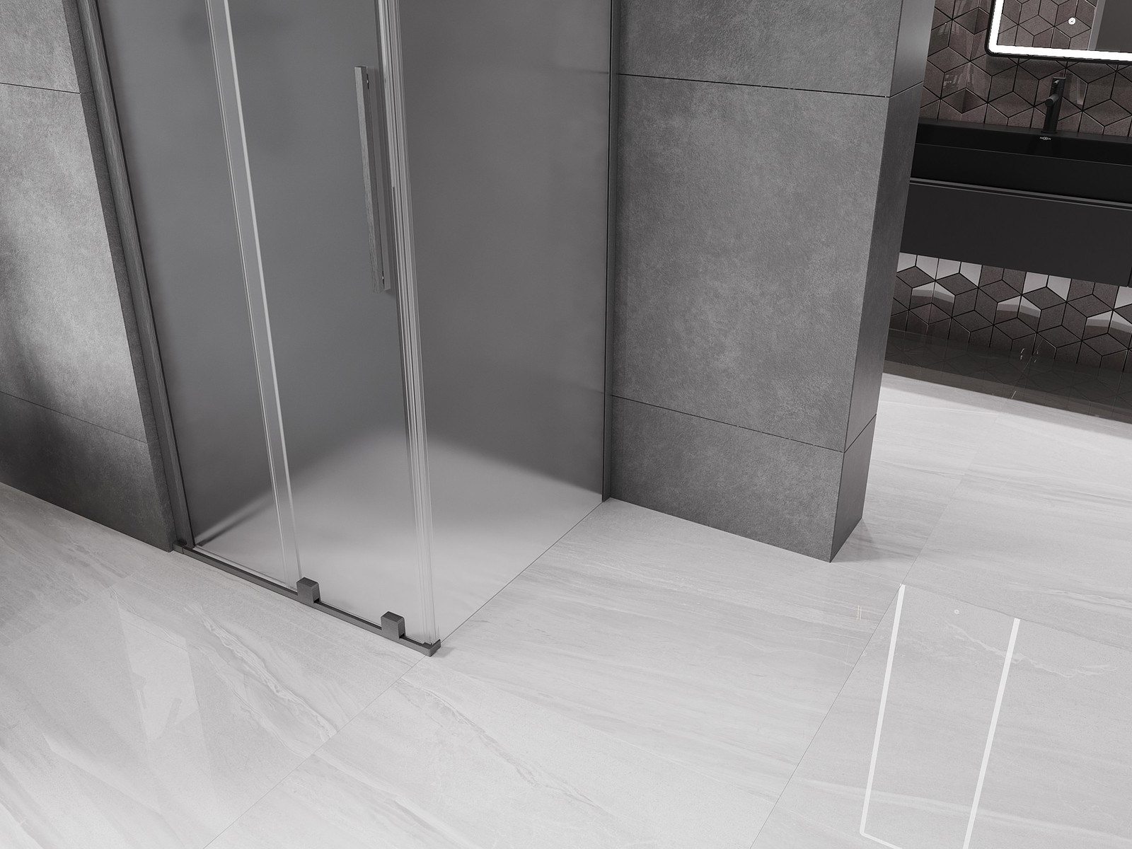 Mexen Velar posuvná sprchová kabina 100 x 100 cm, mléčné sklo, kartáčovaná gun gray - 871-100-100-31-66