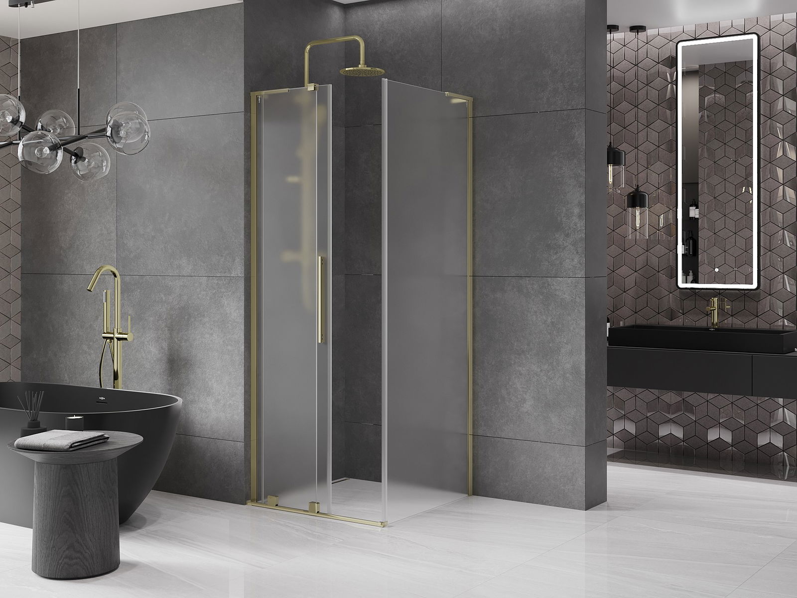 Mexen Velar L sprchový kout posuvný 120 x 120 cm, mražený, zlatý - 871-120-120-33-50