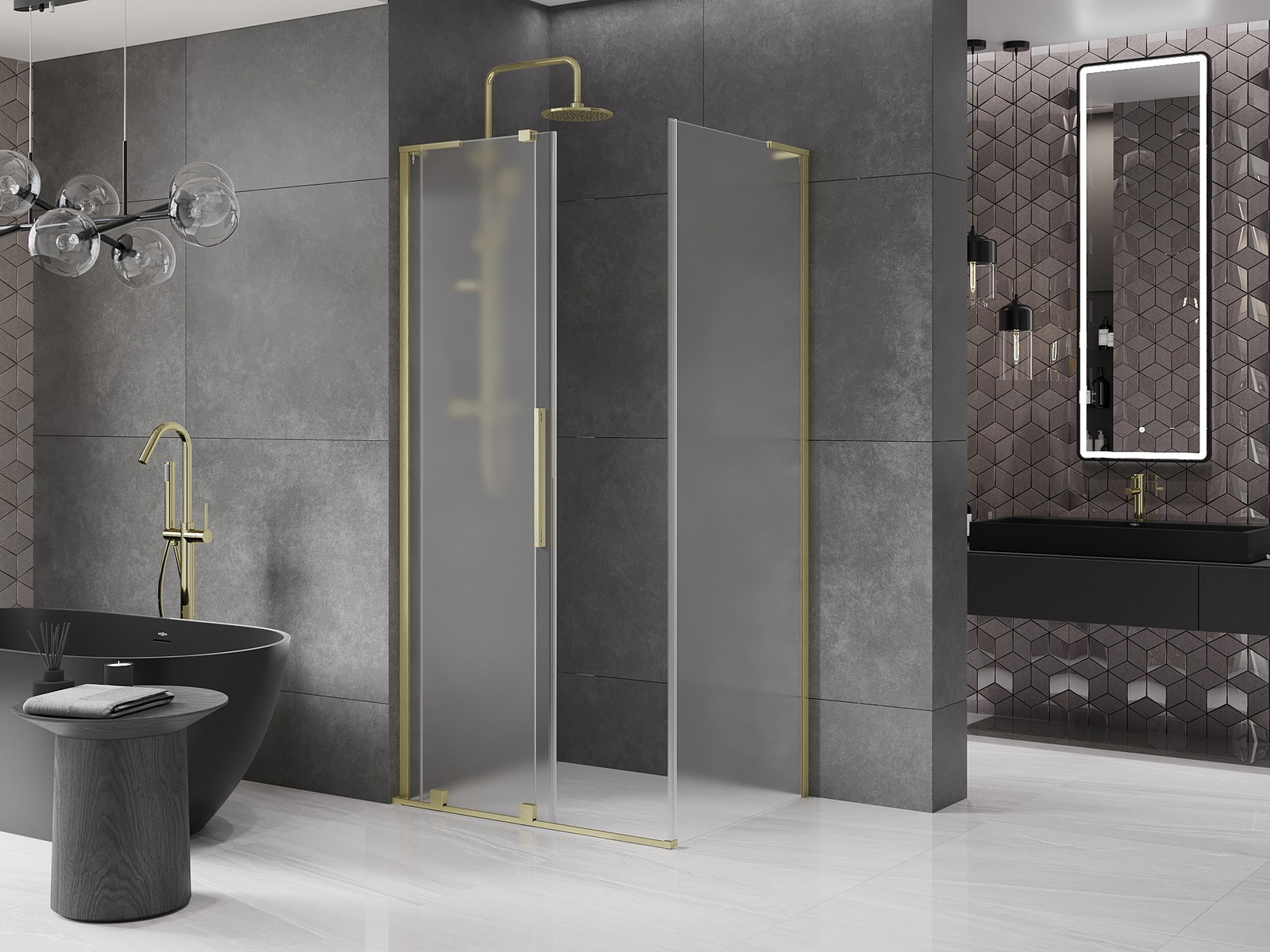 Mexen Velar L posuvná sprchová kabina 100 x 70 cm, matné sklo, kartáčovaná zlatá - 871-100-070-33-55