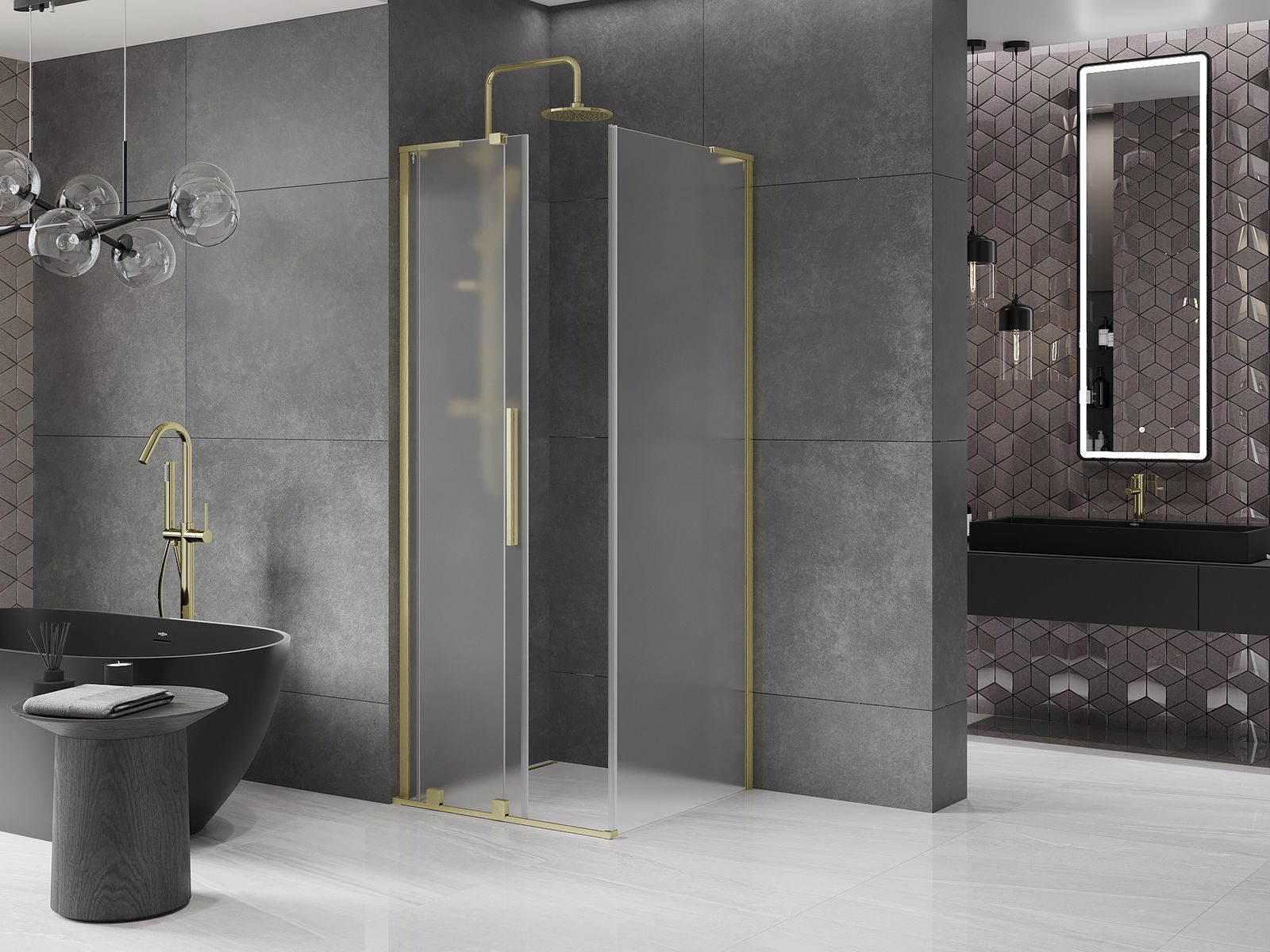 Mexen Velar L posuvná sprchová kabina 100 x 100 cm, námraza, kartáčované zlato - 871-100-100-33-55