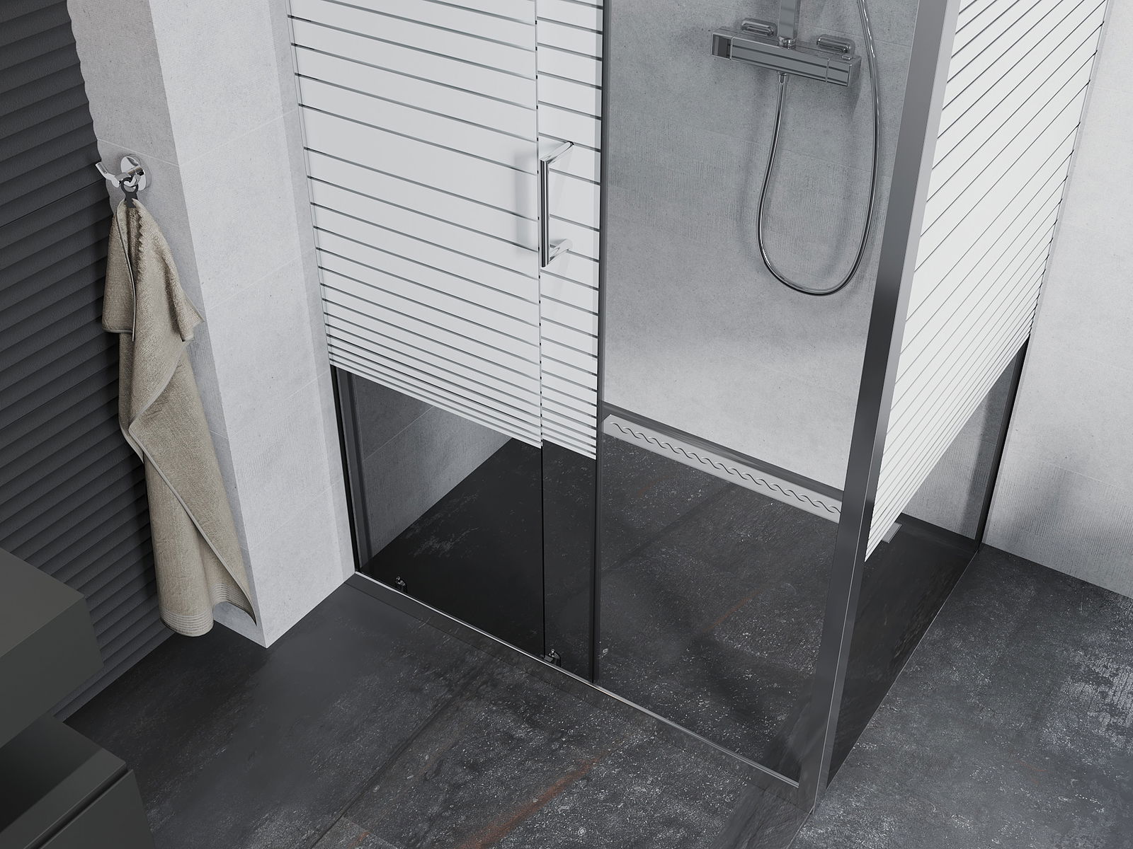 Mexen Apia posuvná sprchová kabina 140 x 80 cm, bílé pruhy, chrom - 840-140-080-01-20