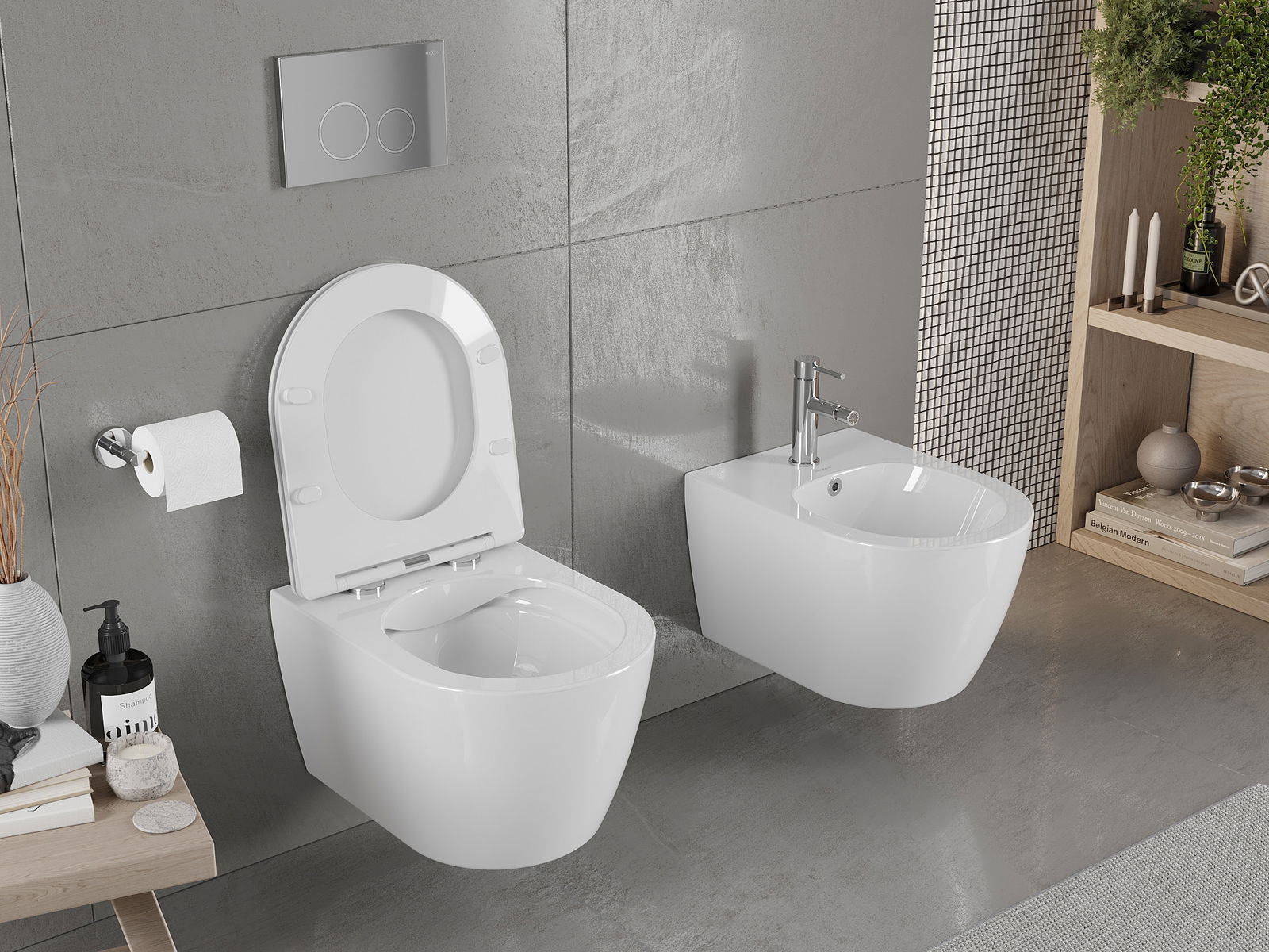 Tenká deska s výjimečně ergonomickým tvarem a mimořádně štíhlým vzhledem. Konstrukce se dokonale přizpůsobí modernímu interiéru koupelny, dodává pocit lehkosti. Skvělá volba pro minimalistická uspořádání.