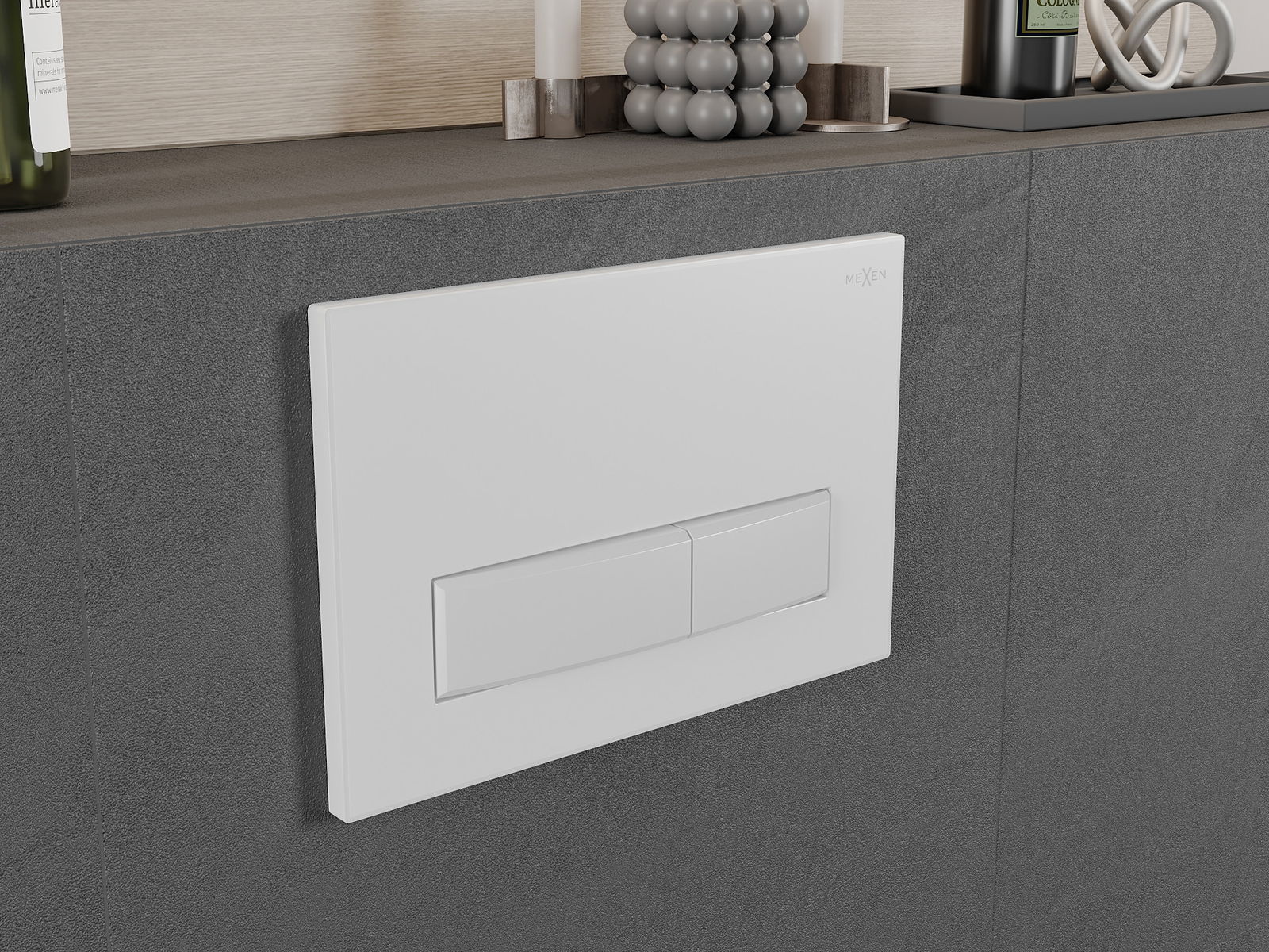 Tlačítko je určeno pro nástěnné rámy, kde je místo montáže umístěno na přední straně konstrukce. Díky tomuto umístění poskytuje snadný přístup a pohodlné ovládání splachování.