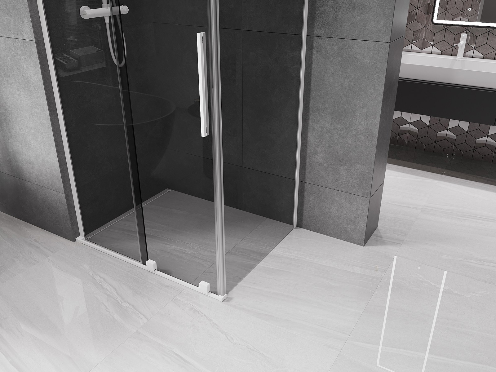 Díky použití univerzálního montážního systému mohou být sprchové dveře namontovány na pravé nebo levé straně, podle potřeby. Díky tomu můžete snadno navrhnout sprchu přizpůsobenou prostoru koupelny.