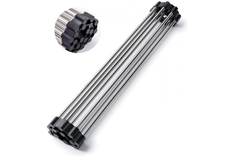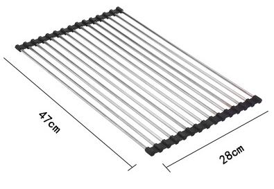 Odkapávač je výjimečně snadno skladovatelný – pokud není potřeba, stačí jej srolovat. Tímto způsobem po složení zabírá málo místa a vejde se i do menší skříňky či zásuvky. Ideální řešení pro malé kuchyně.