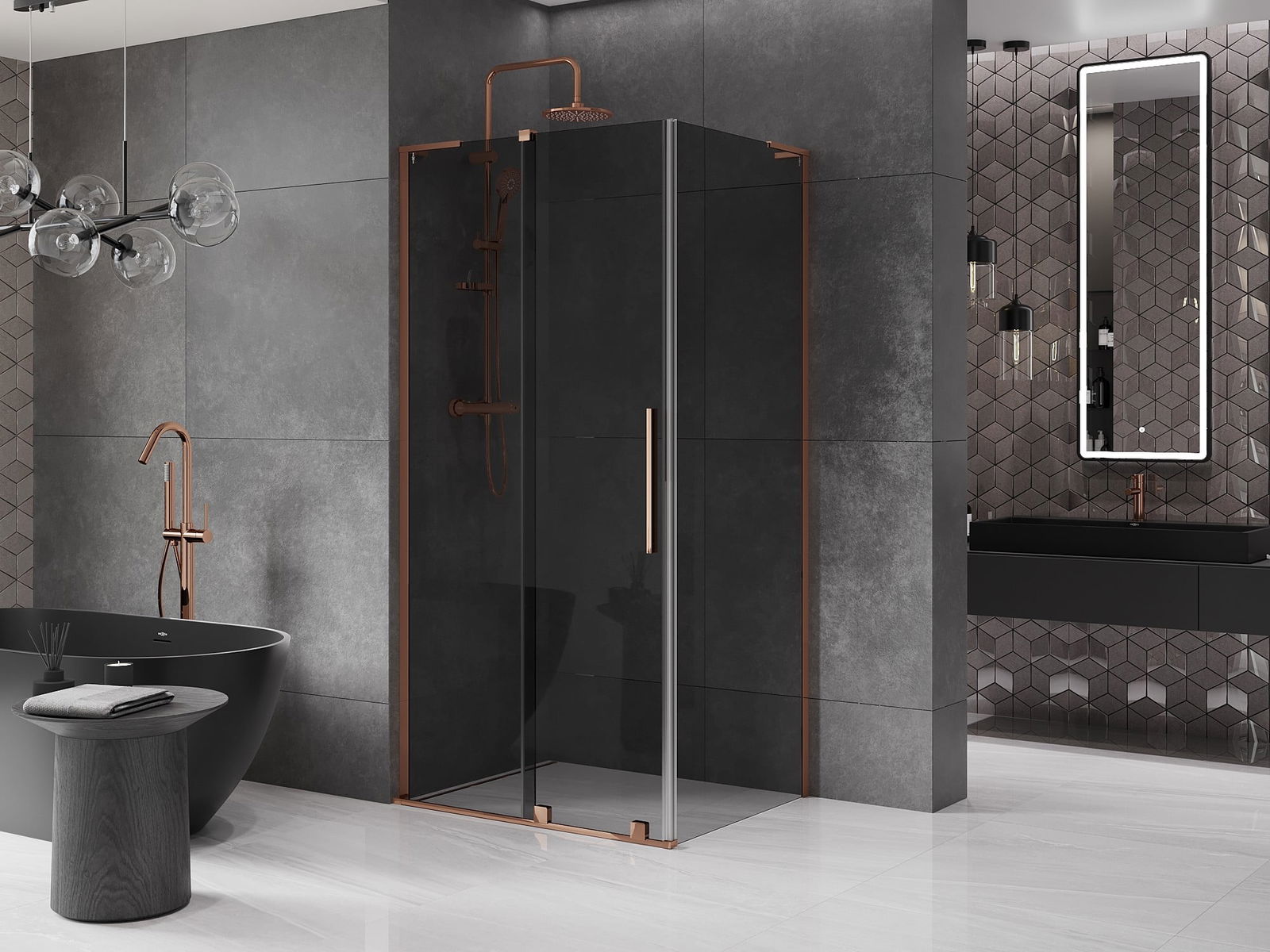 Mexen Velar L posuvná sprchová kabina 110 x 85 cm, grafitová, růžové zlato - 871-110-085-43-60