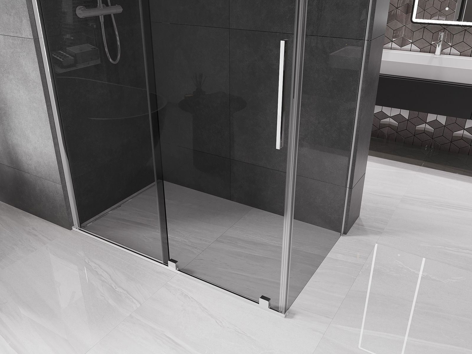 Díky použití univerzálního montážního systému mohou být sprchové dveře namontovány na pravé nebo levé straně, podle potřeby. Díky tomu můžete snadno navrhnout sprchu přizpůsobenou prostoru koupelny.