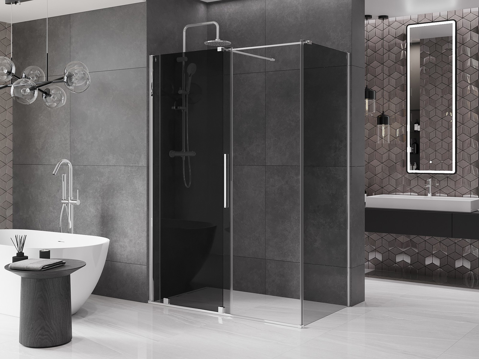 Díky použití univerzálního montážního systému mohou být sprchové dveře namontovány na pravé nebo levé straně, podle potřeby. Díky tomu můžete snadno navrhnout sprchu přizpůsobenou prostoru koupelny.
