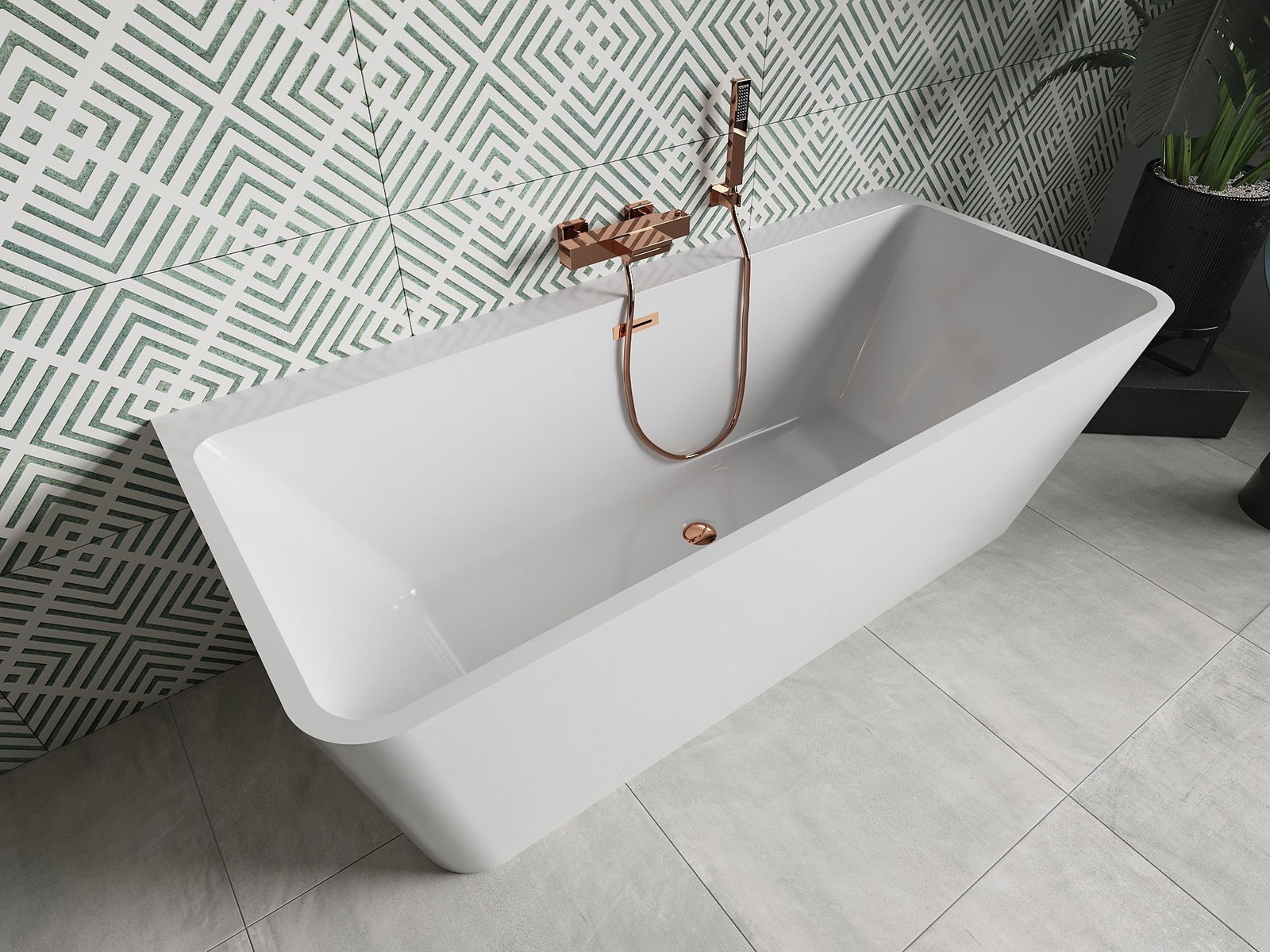 Mexen Volta volně stojící přístěnná vana 150 x 75 cm, bílá, přepad růžové zlato - 51131507500-60