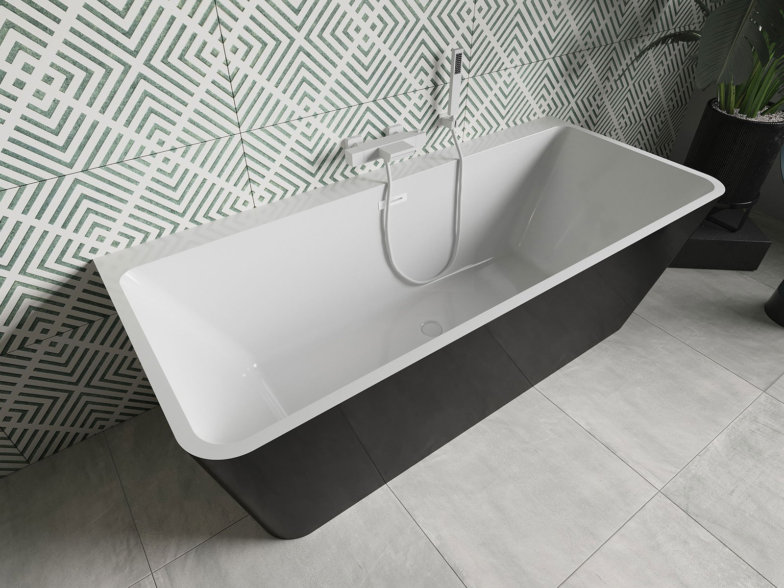 Mexen Volta volně stojící vana ke zdi 150 x 75 cm, bílá/černá, přepad bílý - 51131507575-20