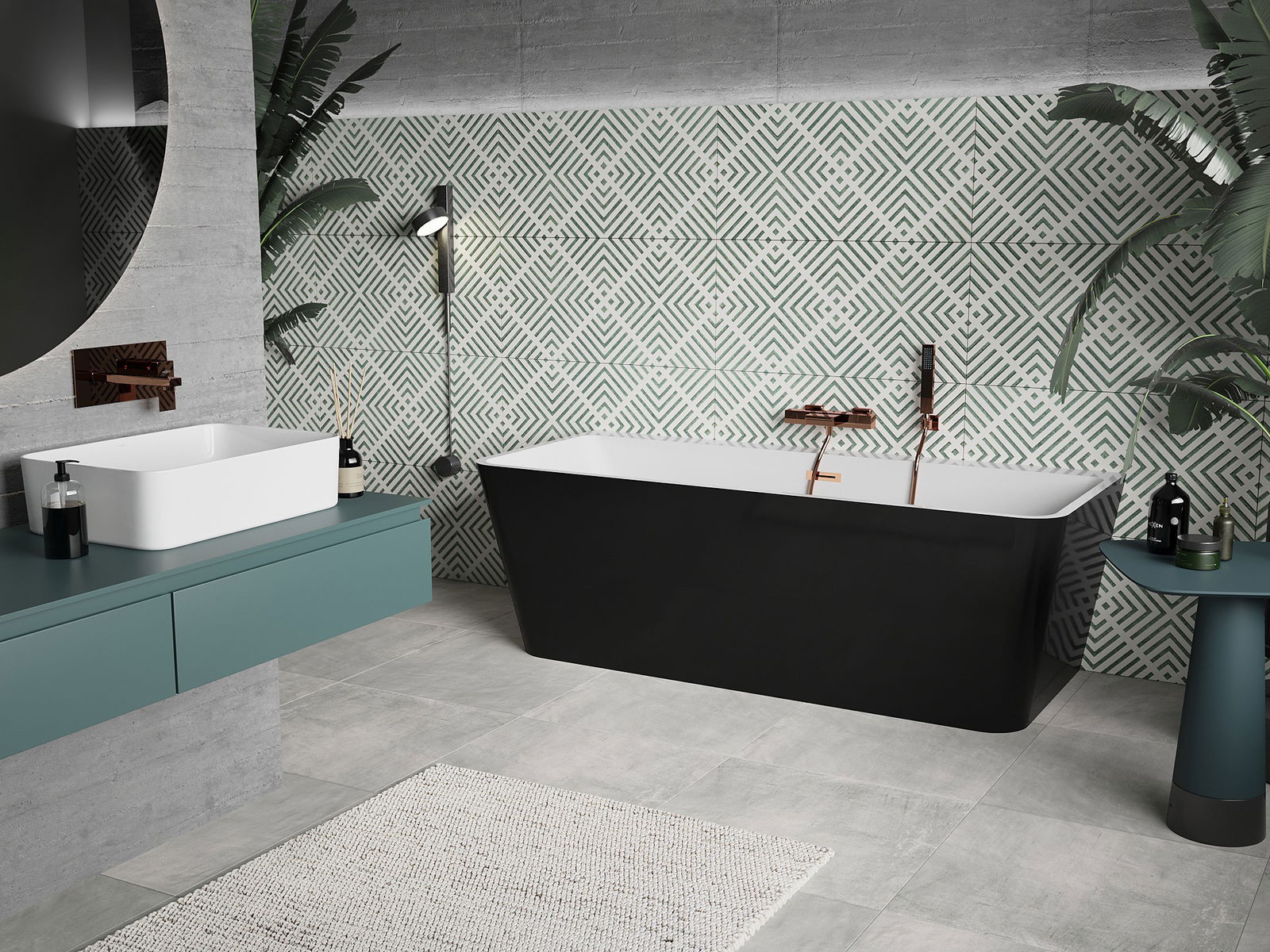 Mexen Volta volně stojící vanová vana 150 x 75 cm, bílá/černá, přepad růžové zlato - 51131507575-60