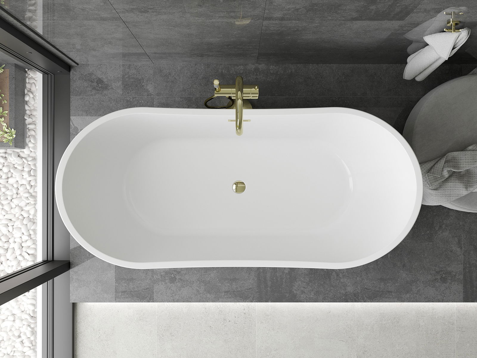Mexen Montana je elegantní volně stojící vana o rozměrech 150 x 75 cm, vyrobená z vysoce kvalitního sanitárního akrylu v bílé barvě. Její oválný tvar a lesklý povrch dodávají každé koupelně moderní vzhled. Vana je vybavena zlatým povrchem, který zdůrazňuje její luxusní charakter. Dalším plusem je přepadový otvor a přiložený sifon se zátkou klik-klak. Vana se vyznačuje také odolností proti matování a UV záření, což zajišťuje dlouhou životnost.