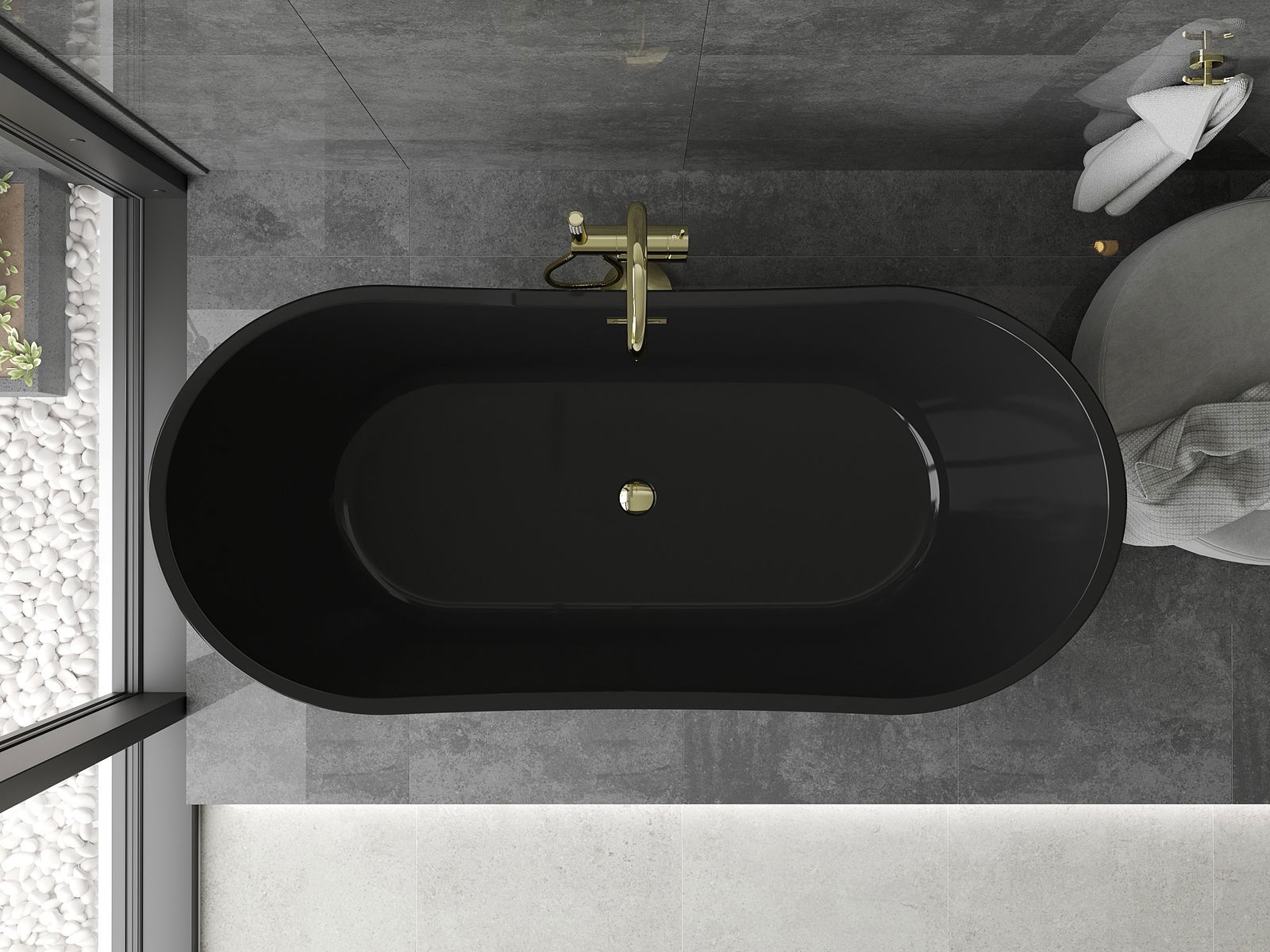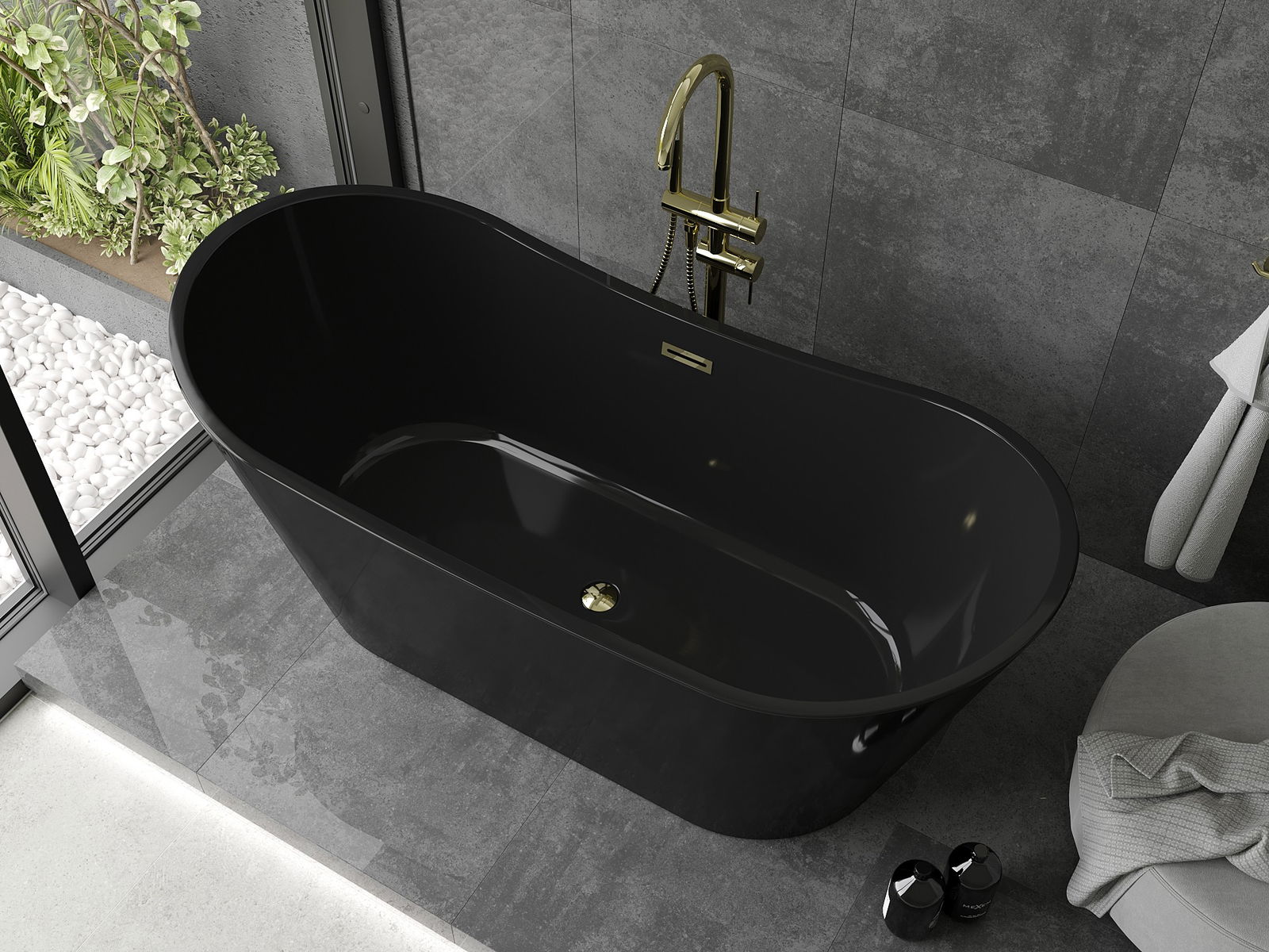 Mexen Montana je elegantní volně stojící vana o rozměrech 170 x 80 cm, dokončena v efektní černé barvě se zlatými detaily. Vyrobená ze sanitárního akrylu, vyznačuje se odolností proti matování a UV záření, což zajišťuje dlouhotrvající lesk. Oválný tvar a přepadový otvor zvyšují její funkčnost a volně stojící montáž usnadňuje instalaci. V setu je sifon a špuntový uzávěr klik klak, což ji činí připravenou k použití ihned po instalaci.