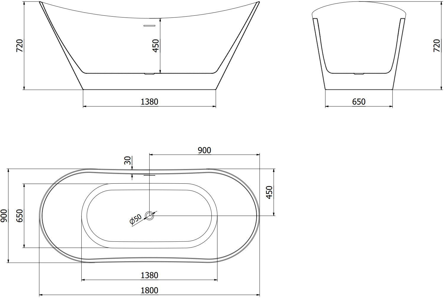 Mexen Montana volně stojící vana 180 x 90 cm, bílá, přepad chrom - 52011809000-01