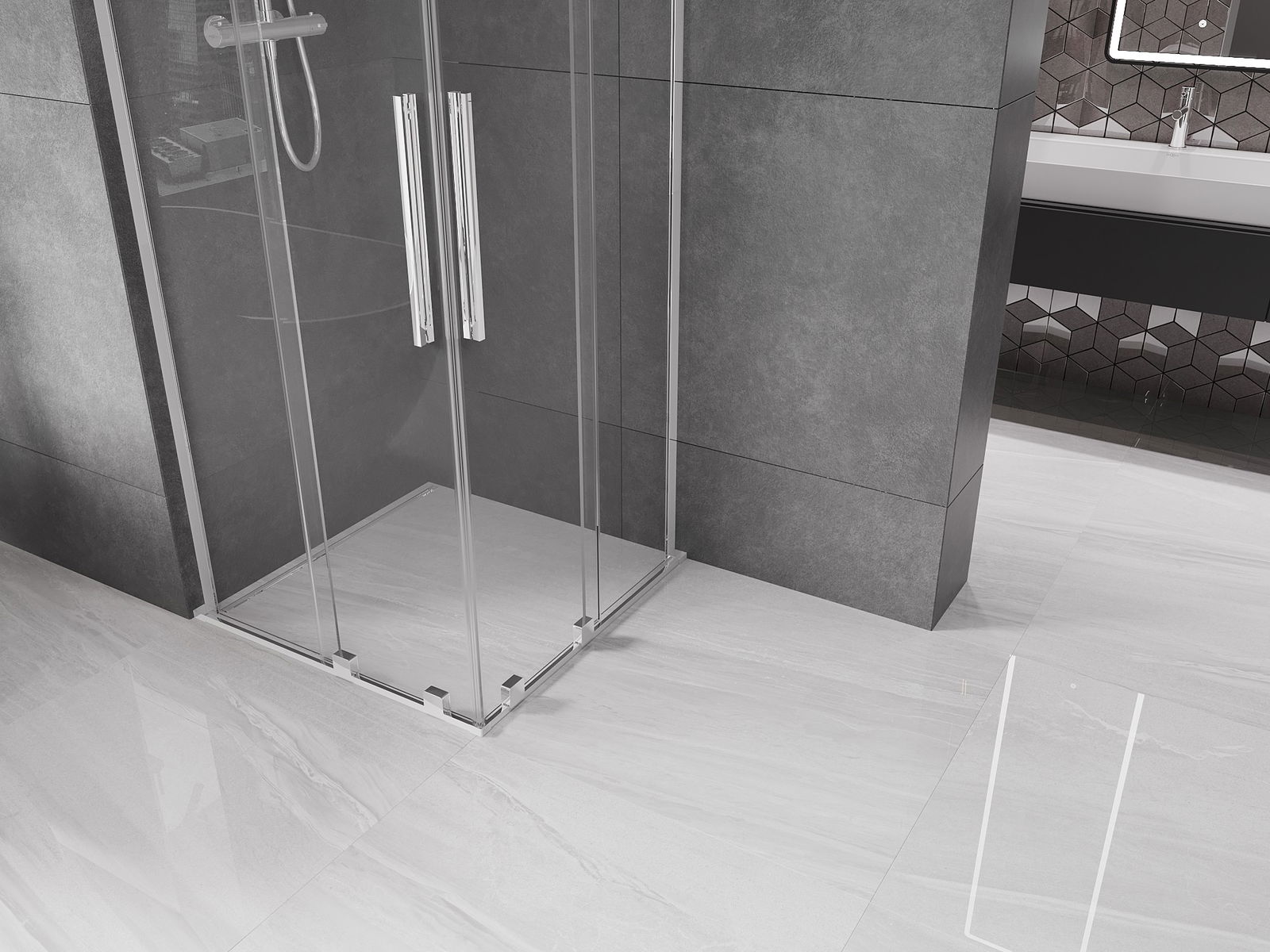 Produkt lze podle potřeby namontovat jak na sprchovou vaničku, tak přímo na podlahu. Univerzální způsob montáže umožňuje přizpůsobení produktu různým typům koupelen a konfiguracím prostor.