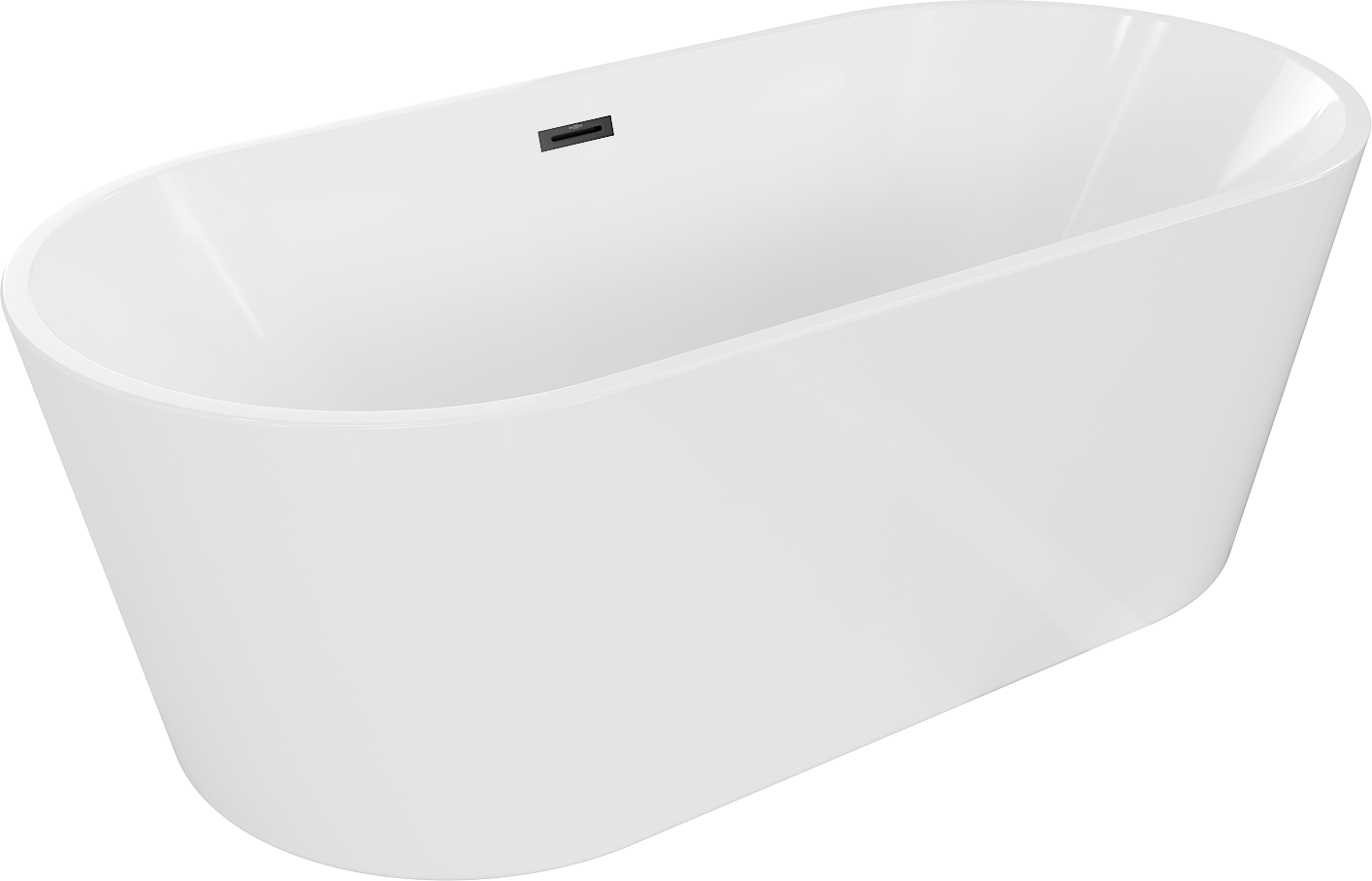 Mexen Luna volně stojící vana 160 x 75 cm, bílá, černý přepad - 52031607500-70