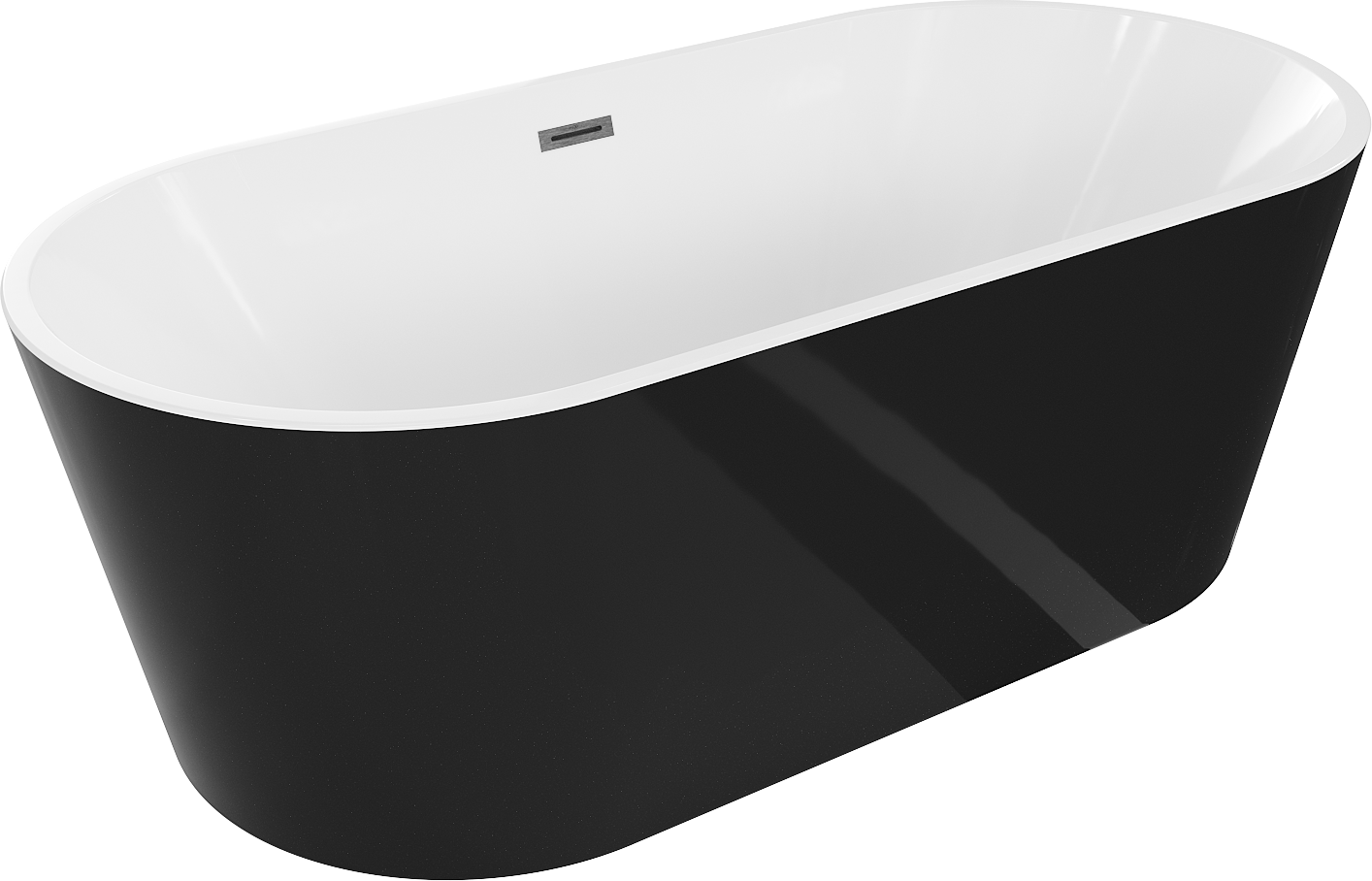 Mexen Luna volně stojící vana 160 x 75 cm, bílá/černá, přepad gun gray kartáčovaný - 52031607575-66