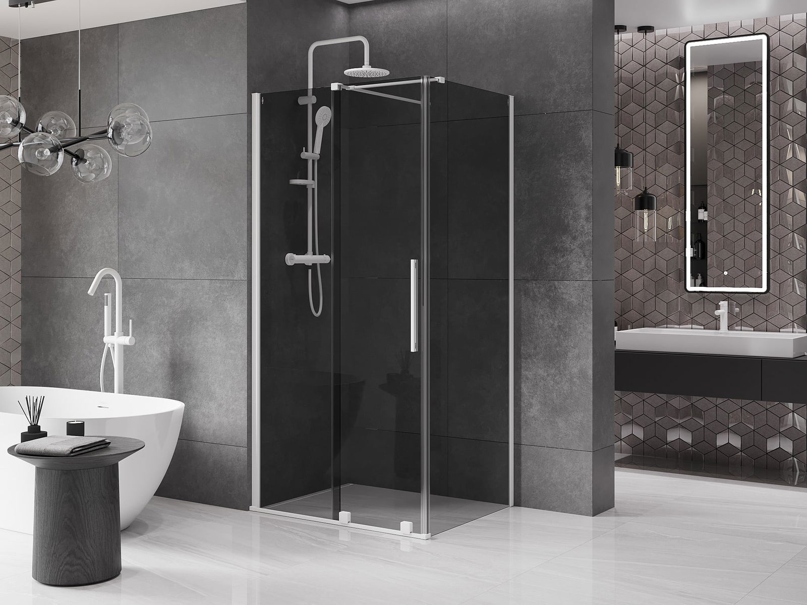 Mexen Velar posuvná sprchová kabina 90 x 75 cm, grafit, bílá - 871-090-075-41-20