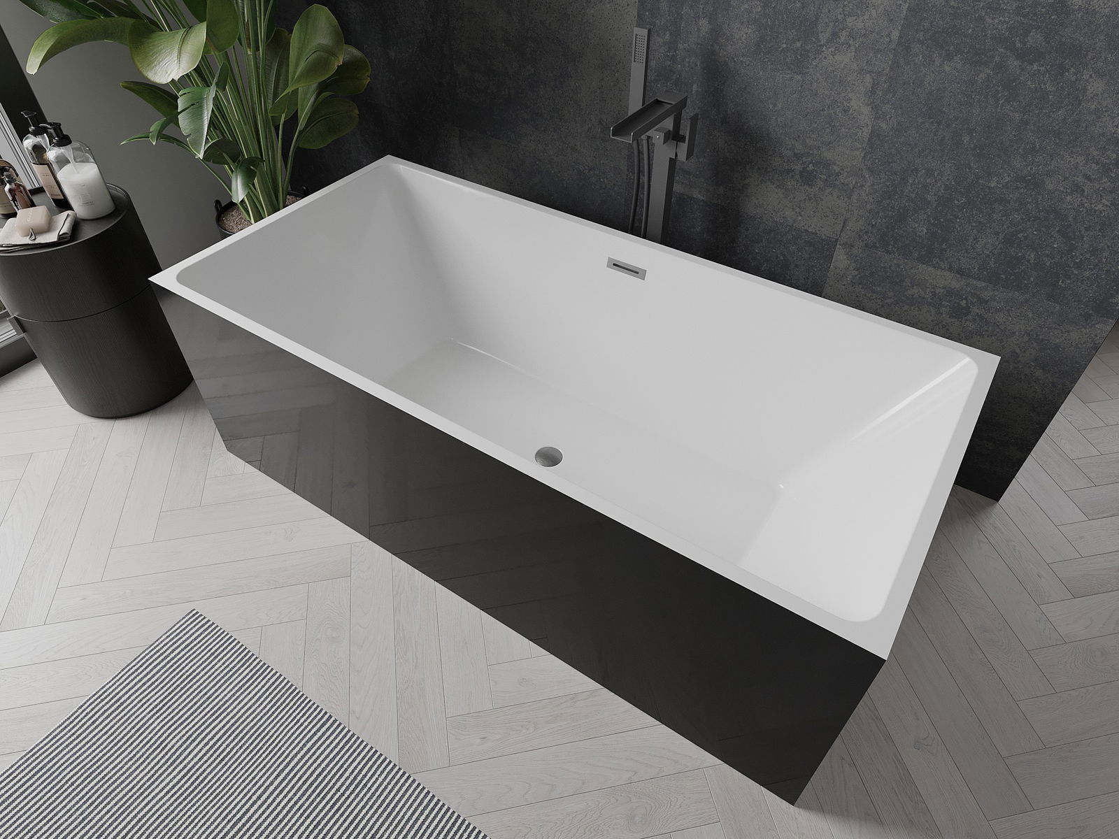 Mexen Nita volně stojící vana 170 x 80 cm, bílá/černá, přepad gun gray kartáčovaný - 52091708075-66