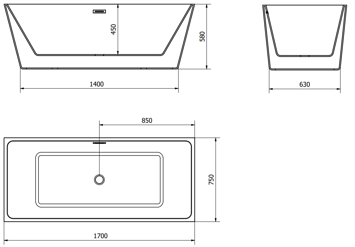 Mexen Lita volně stojící vana 170 x 75 cm, bílá/černá, přeliv gun metal - 52121707575-95