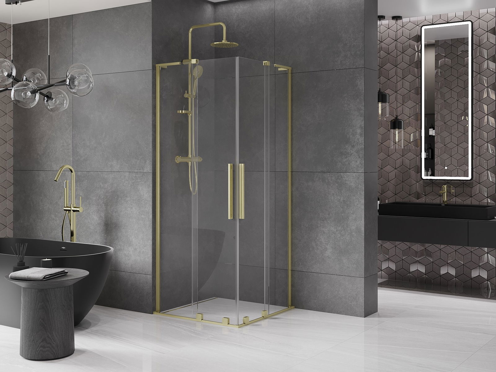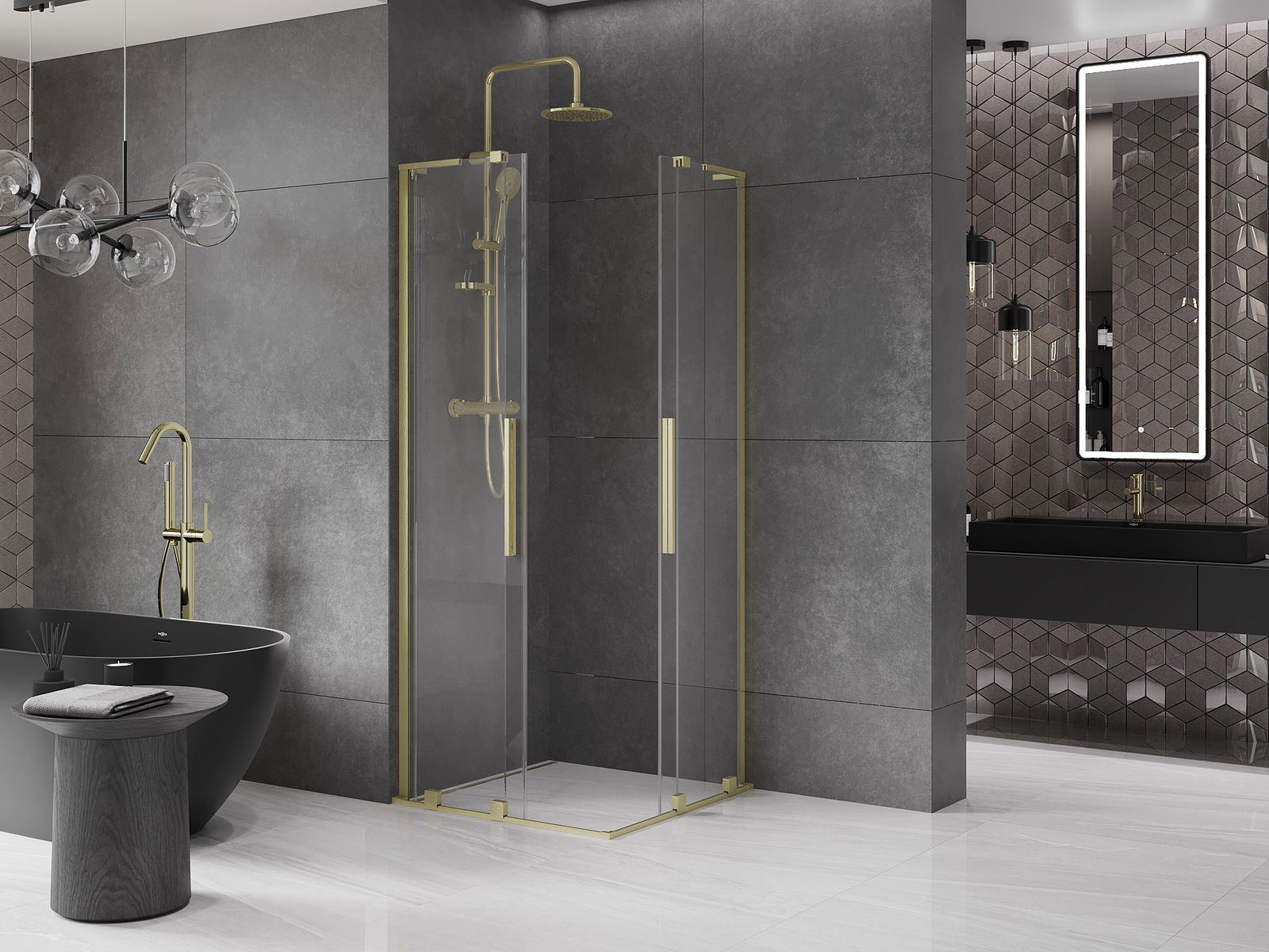 Mexen Velar L Duo sprchový kout posuvný 100 x 100 cm, transparentní, zlatý kartáčovaný - 871-100-100-02-03-55