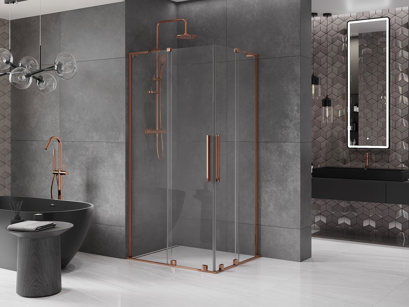 Mexen Velar L Duo sprchová kabina posuvná 90 x 80 cm, transparentní, růžové zlato - 871-090-080-02-03-60