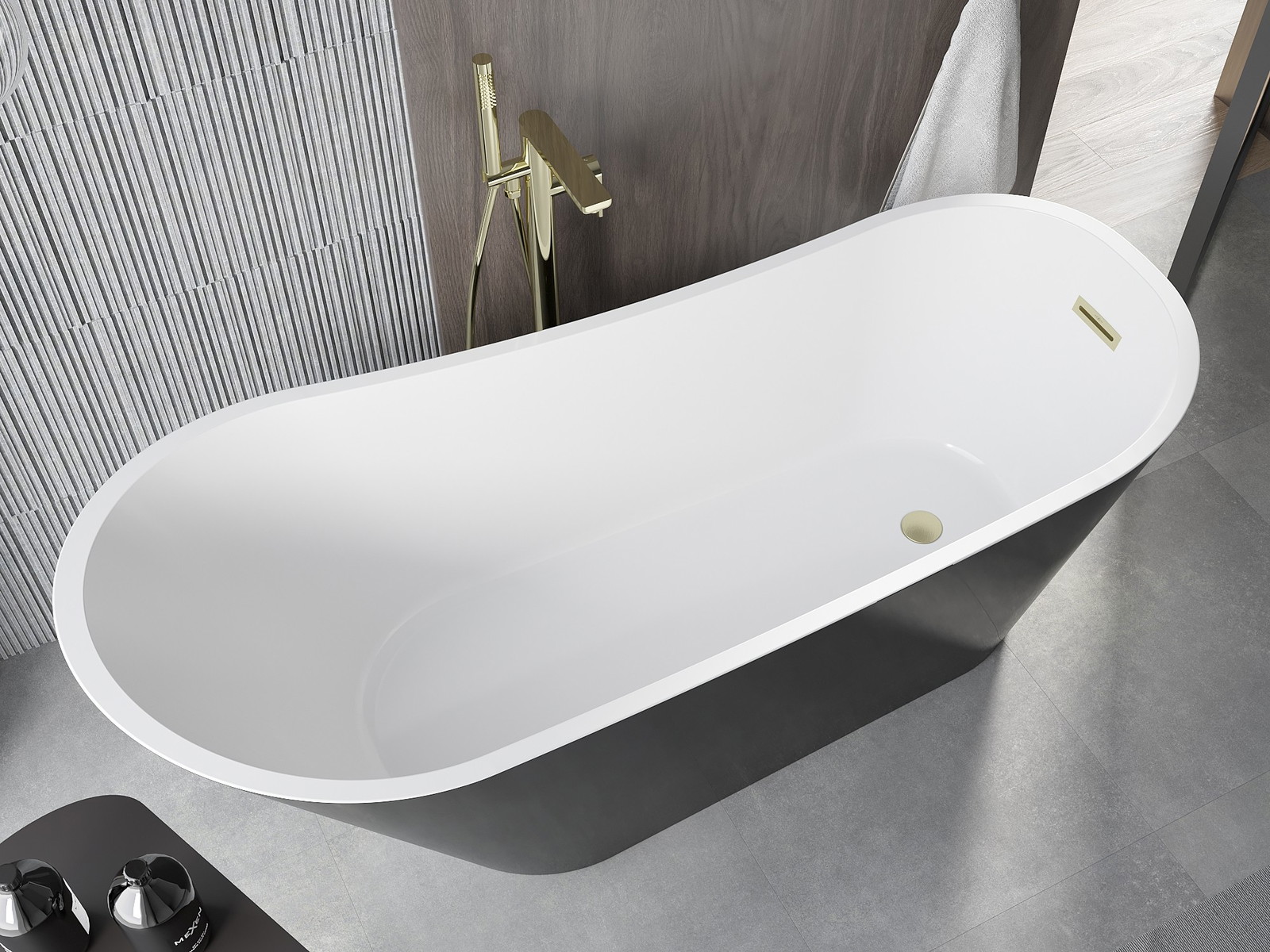Mexen Alta volně stojící vana 170 x 75 cm, bílá/černá, přeliv zlatý kartáčovaný - 52141707575-55