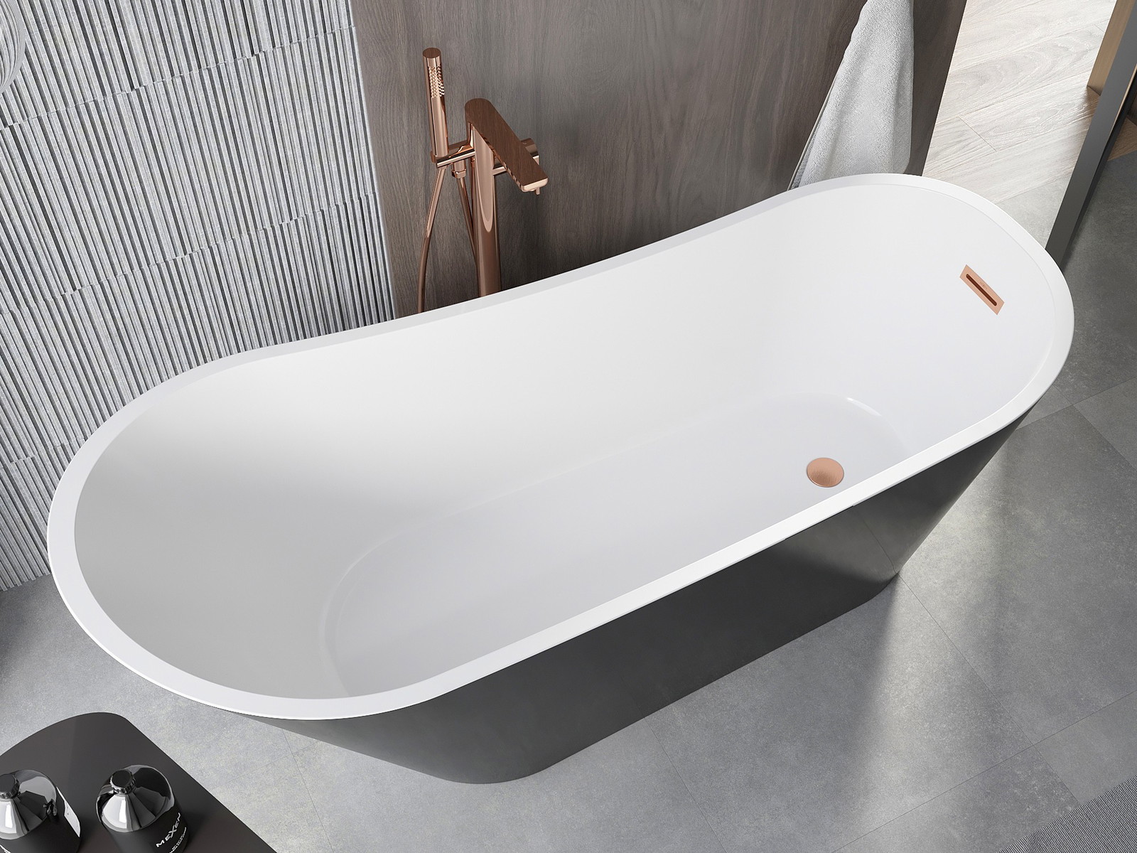 Mexen Alta volně stojící vana 170 x 75 cm, bílá/černá, přepad měď kartáčovaná - 52141707575-65