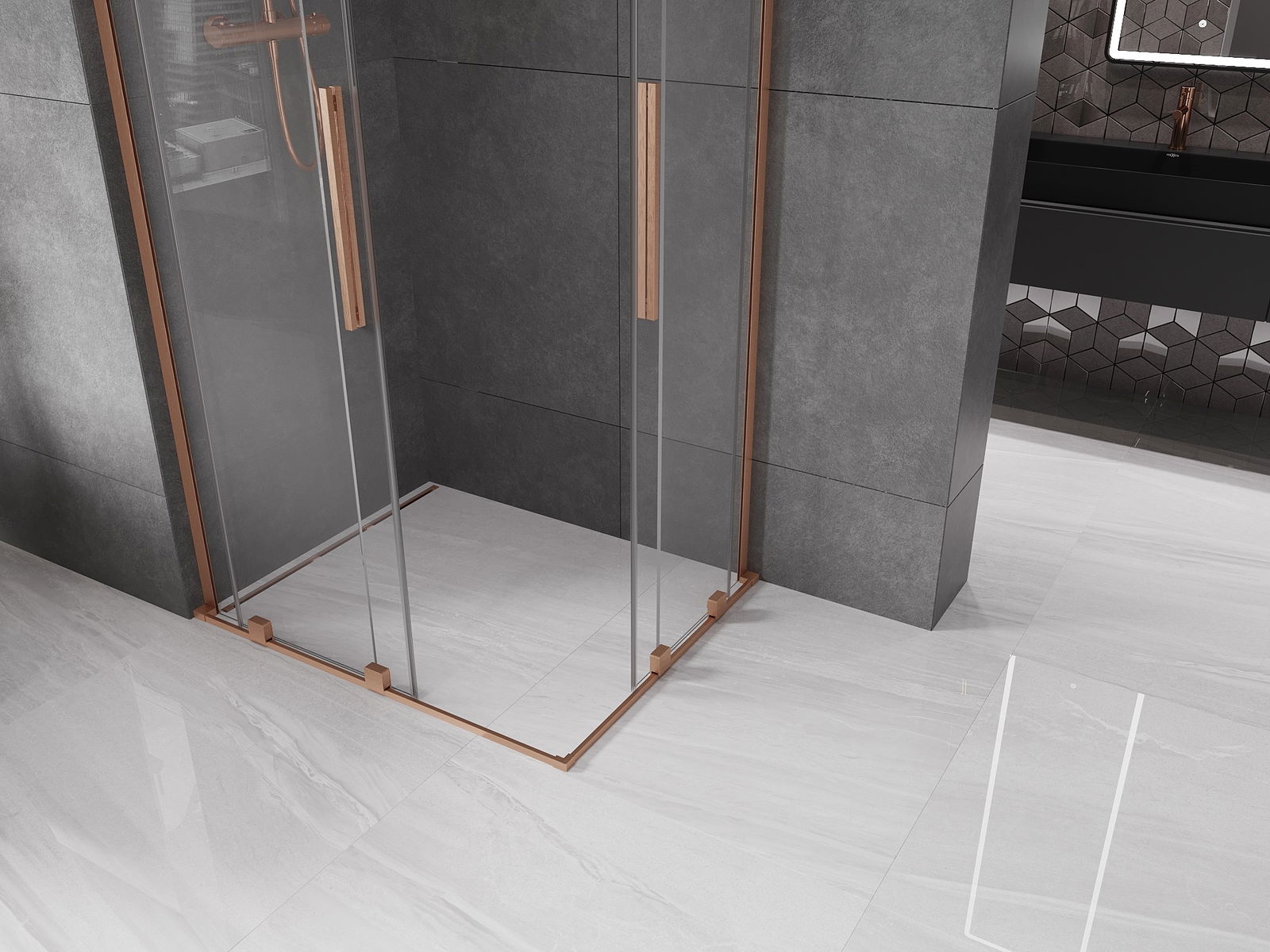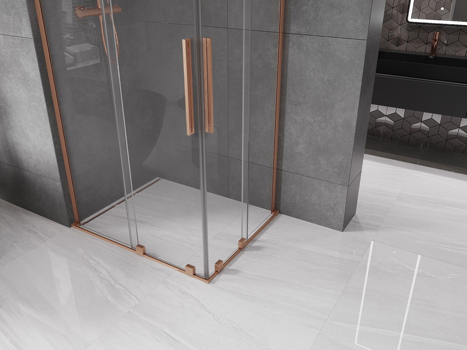 Mexen Velar L Duo posuvná sprchová kabina 90 x 80 cm, transparentní, kartáčovaná měď - 871-090-080-02-03-65