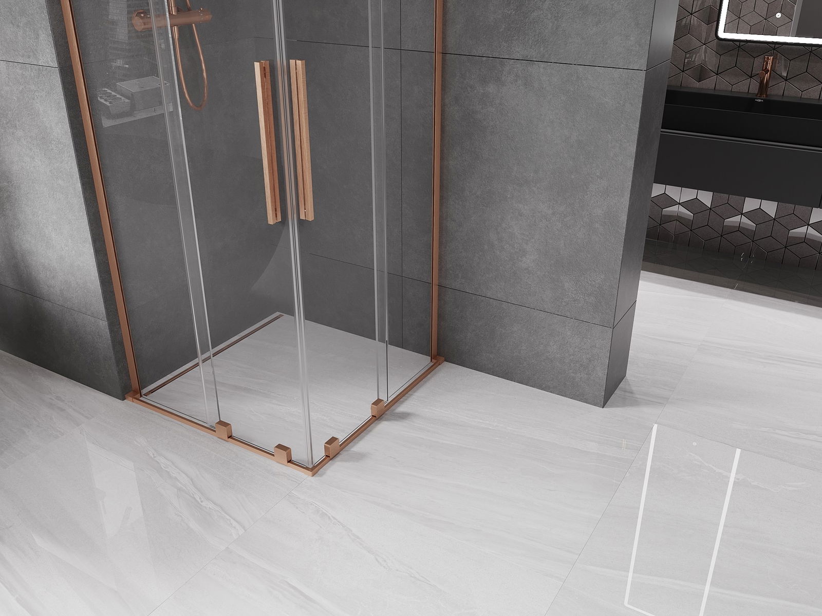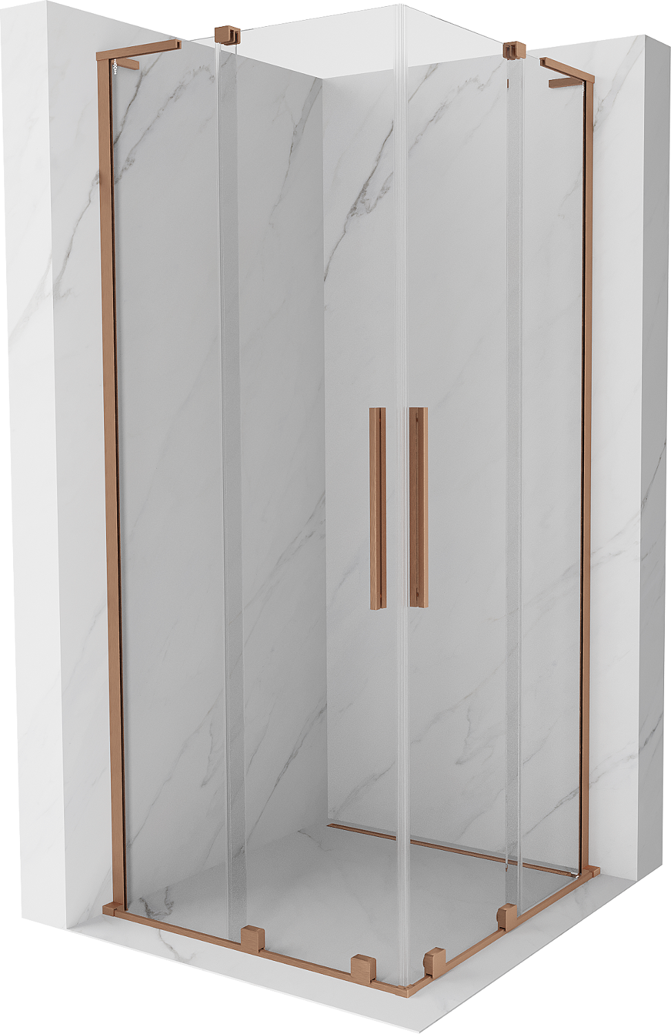 Mexen Velar L Duo posuvná sprchová kabina 90 x 90 cm, transparentní, kartáčovaná měď - 871-090-090-02-03-65