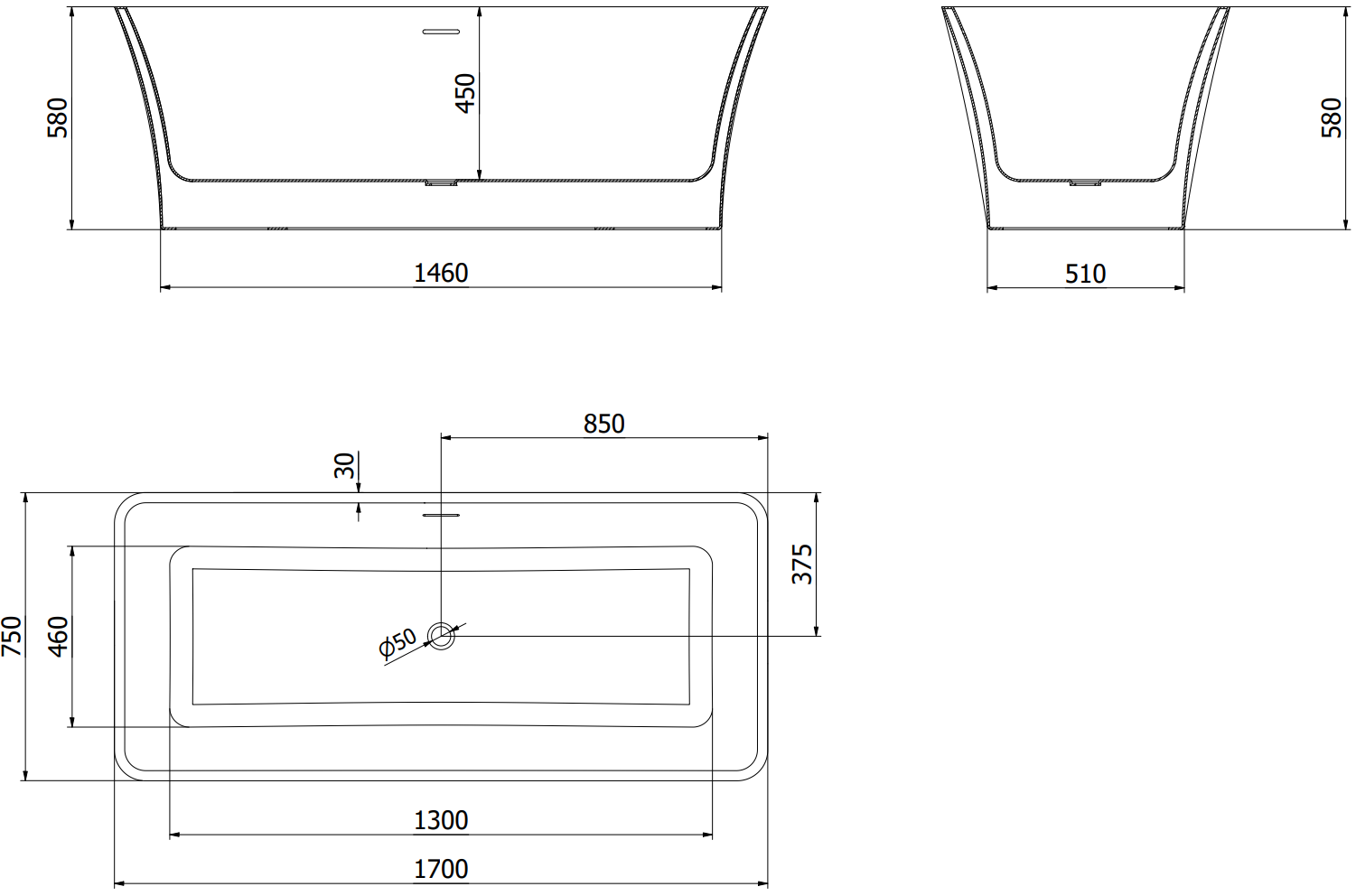 Mexen Tonia volně stojící vana 170 x 75 cm, bílá, přepad gun gray kartáčovaný - 52171707500-66