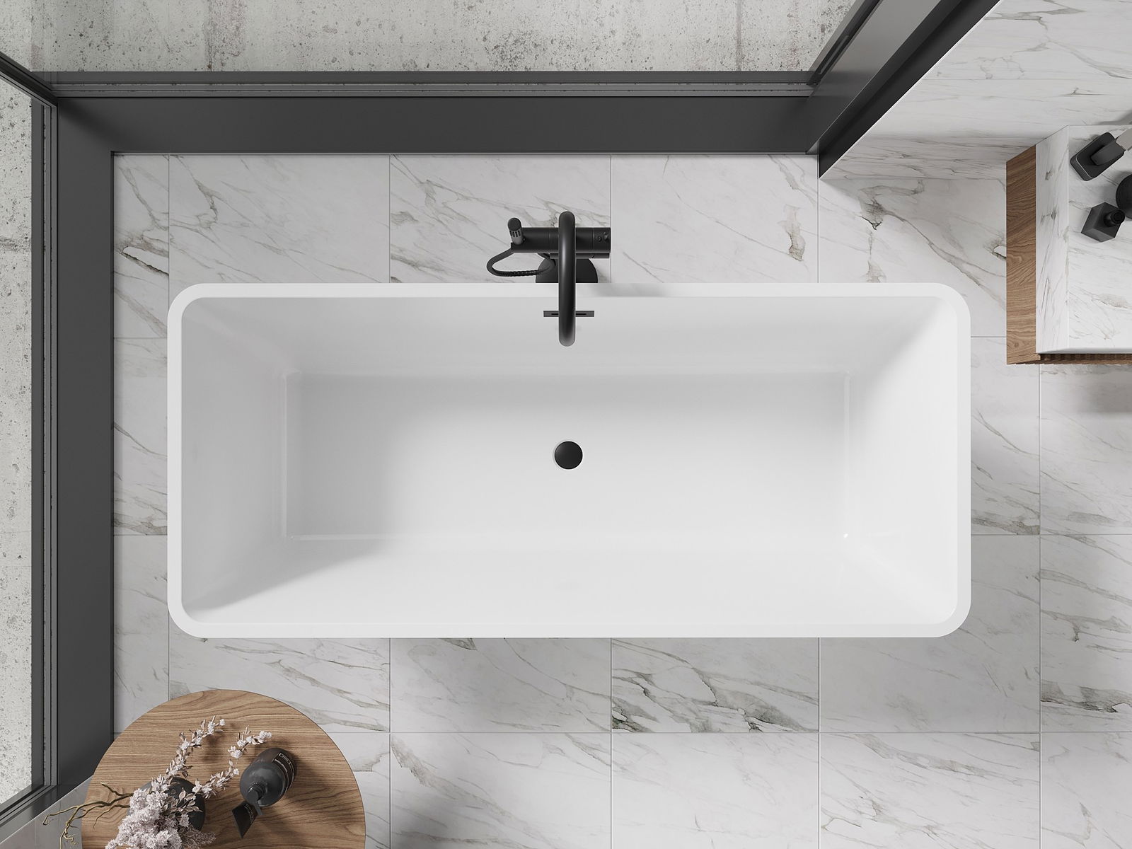 Mexen Tonia volně stojící vana 170 x 75 cm, bílá, černý přepad - 52171707500-70