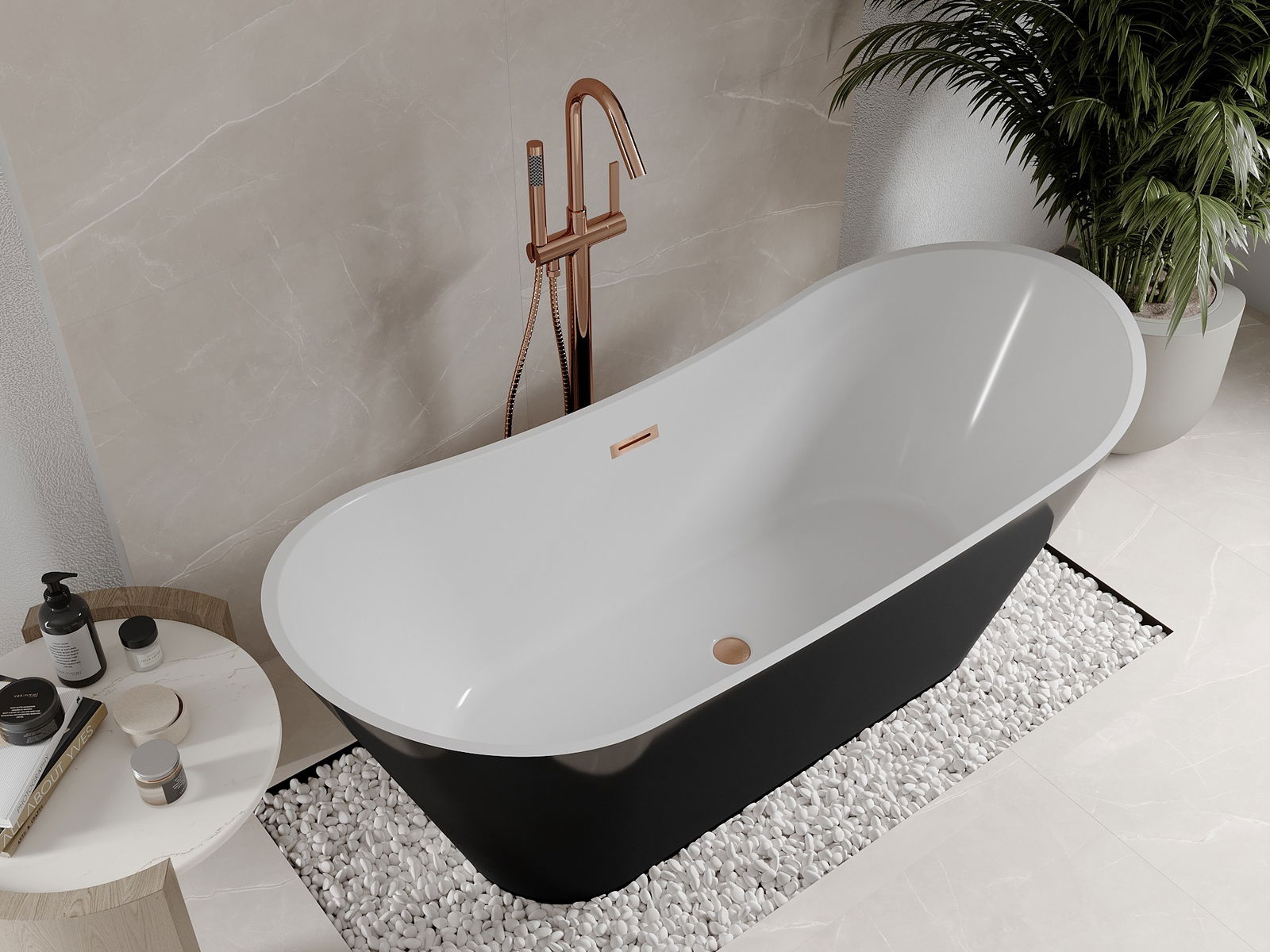 • Mexen Celia volně stojící vana 170 x 75 cm, bílá/černá, přepad kartáčovaná měď - 52331707575-65