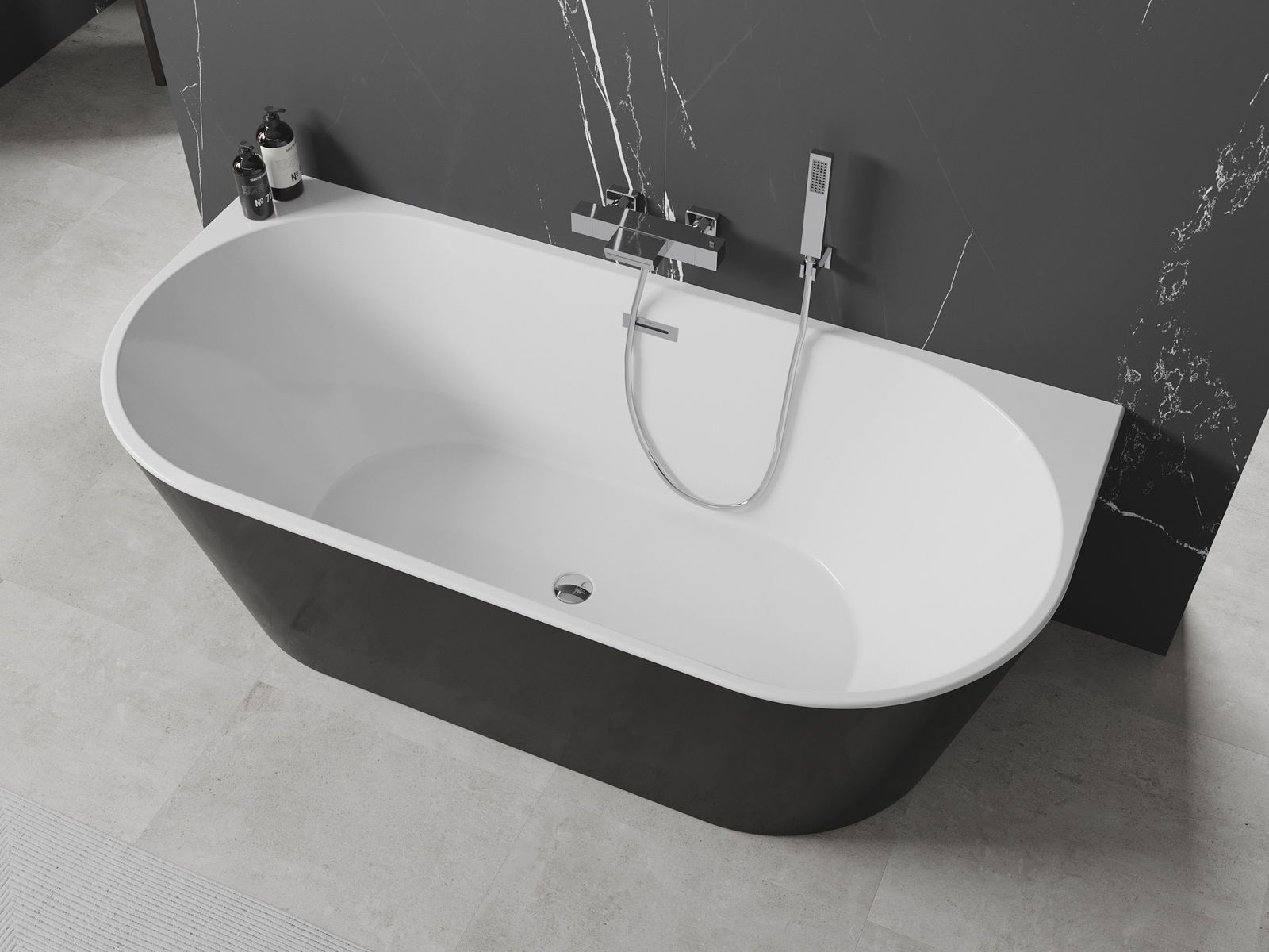 Mexen Oval volně stojící vana u zdi 140 x 75 cm, bílá/černá, přepad chrom - 52671407575-01