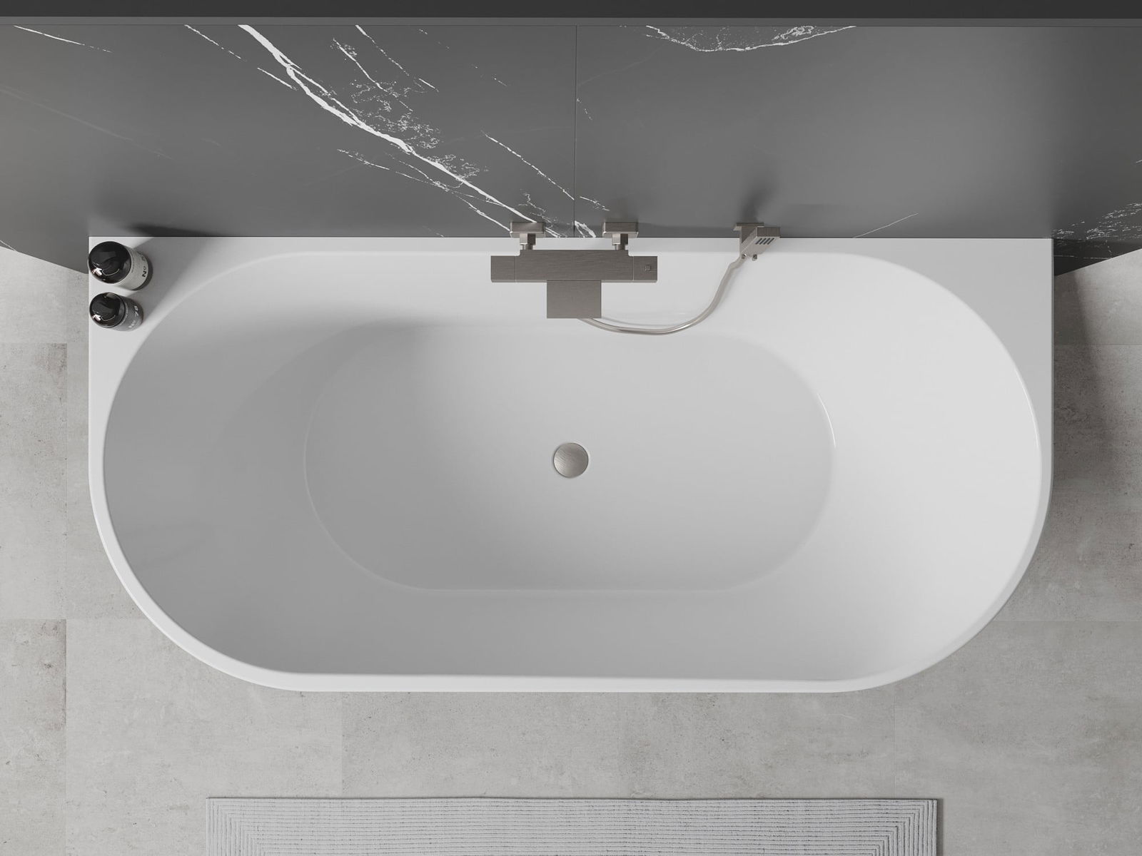 Mexen Oval volně stojící vana ke zdi 150 x 75 cm, bílá, přepad kartáčovaný nikl - 52671507500-97