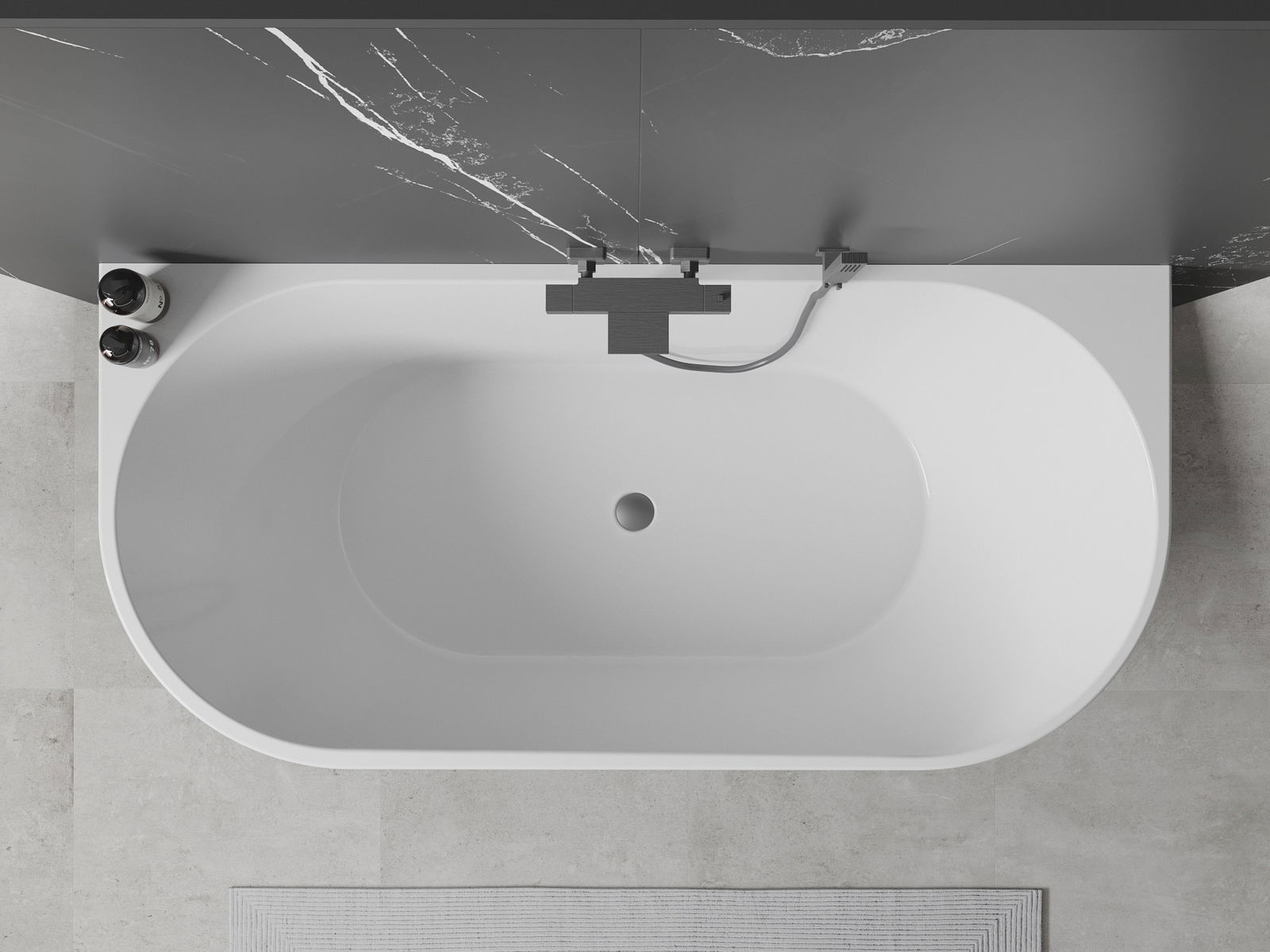 Mexen Oval volně stojící vanová nádrž u stěny 160 x 80 cm, bílá/černá, přepadová gun metal - 52671608075-95
